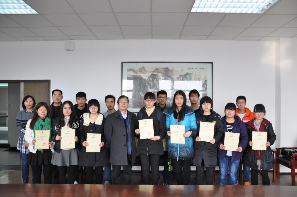 1月7日,我校2015級優(yōu)秀新生獎學(xué)金頒獎儀式暨座談會在逸夫樓406會議室舉行。教務(wù)處、招生工作辦公室、學(xué)工部相關(guān)負(fù)責(zé)人和十余名優(yōu)秀新生獎學(xué)金獲獎代表參加。