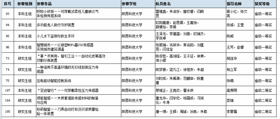 我校參賽隊(duì)伍在省賽獲獎(jiǎng)一覽表