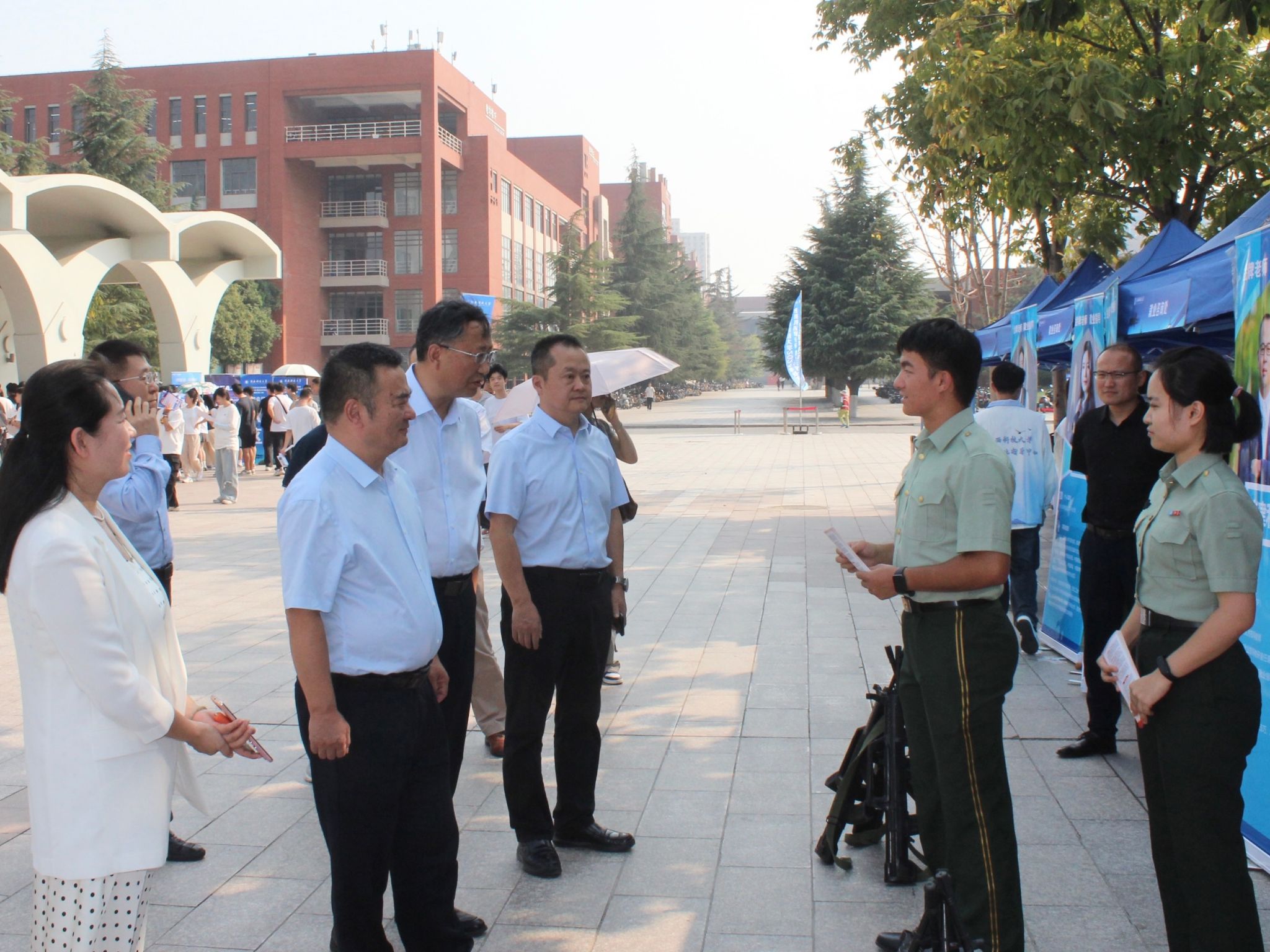 李學(xué)軍對(duì)方偉一行的蒞臨指導(dǎo)表示歡迎,并介紹了學(xué)?!叭齽?chuàng)兩遷”的發(fā)展歷程和我校在學(xué)科建設(shè)、教育教學(xué)、思想政治教育及就業(yè)工作等方面取得的成績(jī)。他表示,學(xué)校一直以來高度重視就業(yè)指導(dǎo)工作,積極響應(yīng)黨中央、國(guó)務(wù)院及教育部關(guān)于促進(jìn)高校畢業(yè)生就業(yè)的系列決策部署,通過一系列有效措施,不斷提升學(xué)生的就業(yè)競(jìng)爭(zhēng)力和職業(yè)發(fā)展能力,學(xué)校將進(jìn)一步加強(qiáng)和改進(jìn)就業(yè)指導(dǎo)課程體系建設(shè),持續(xù)提升就業(yè)育人能力,不斷推進(jìn)高質(zhì)量充分就業(yè),推動(dòng)學(xué)生德智體美勞全面發(fā)展。