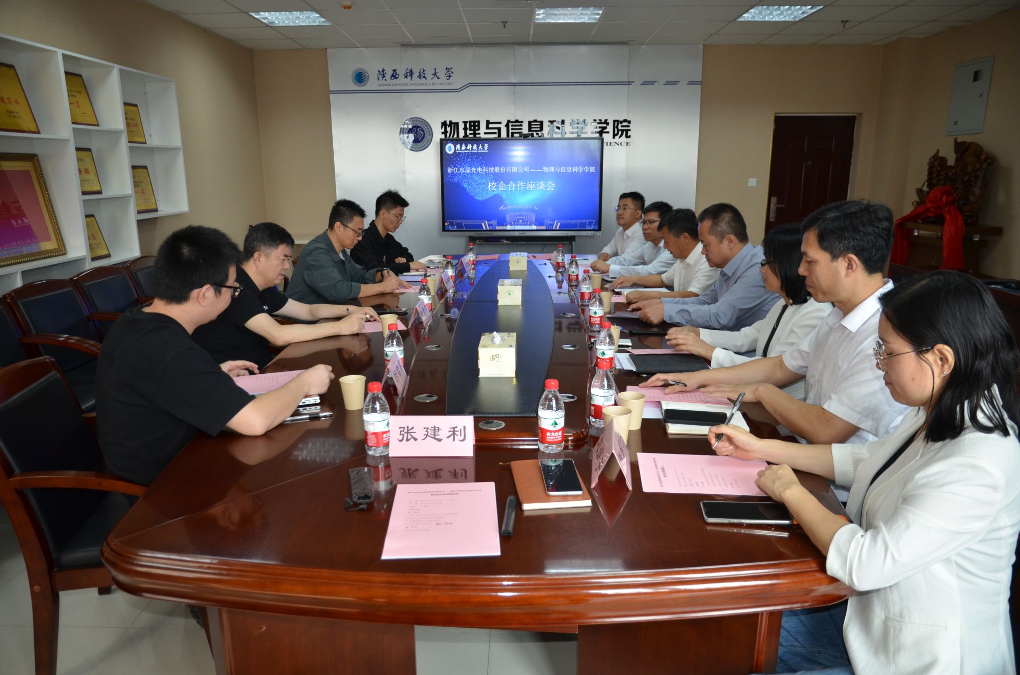 為貫徹落實學校第三次黨代會精神,深化校企合作,助力學生高質(zhì)量就業(yè),9月27日上午,物理與信息科學學院與浙江水晶光電科技股份有限公司舉行校企合作座談會。校黨委副書記李學軍出席座談會,浙江水晶光電科技股份有限公司總經(jīng)理王震宇一行4人,物理學院班子成員、專業(yè)教師、畢業(yè)班輔導員參加座談。會議由物理學院院長劉建科主持。