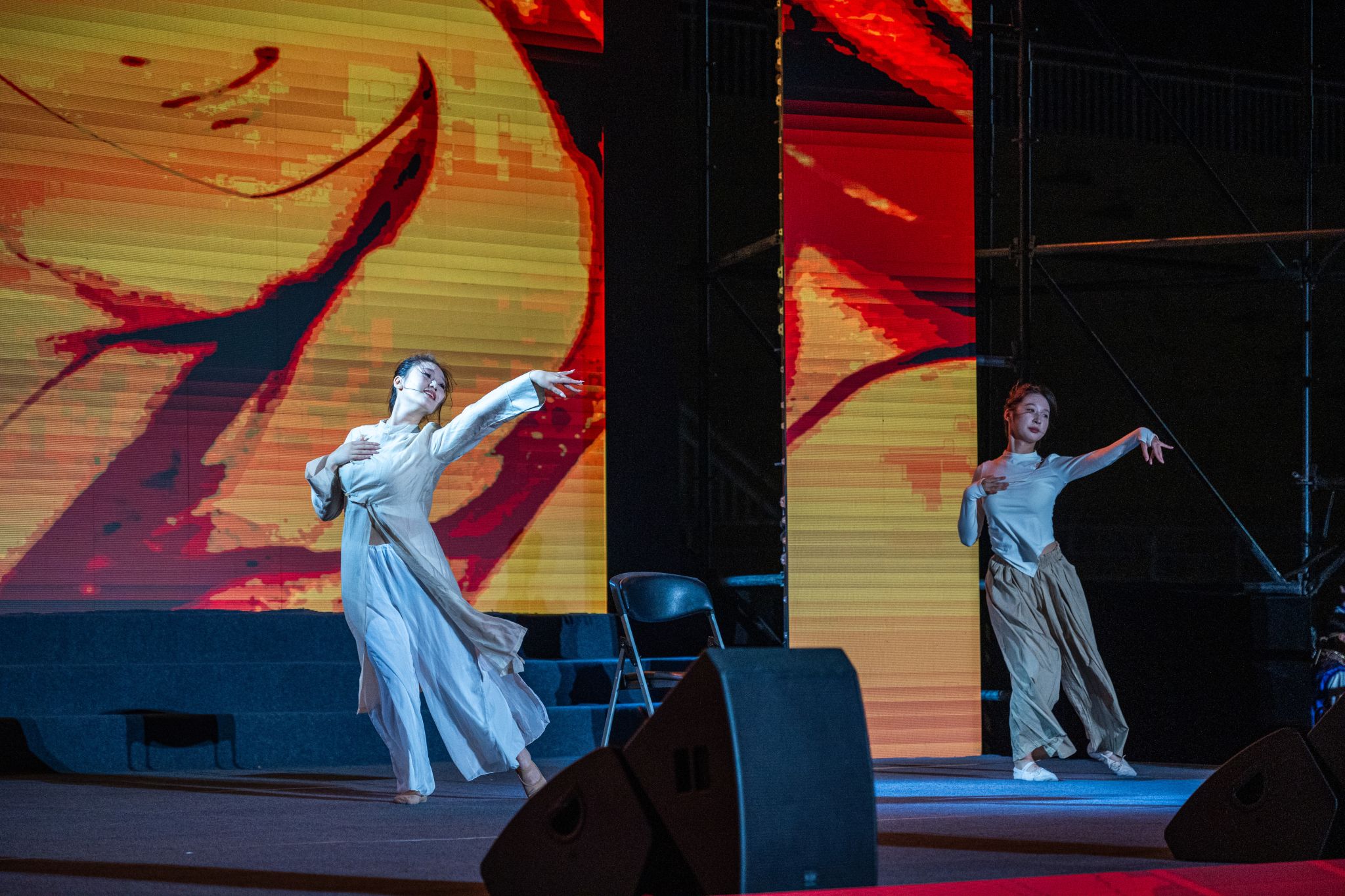第三篇章“強國有我”中,舞蹈《海舞潮歌》中以情感為靈魂,以民舞的藝術(shù)形式演繹著文化的傳承和表達;歌曲《青春站位》由退伍大學生士兵和國旗護衛(wèi)隊學生演出,生動展示了“有為青年,參軍報國”的青春風采。校歌《遠航》、《歌唱祖國》將晚會推向了高潮,強基固本、蓄勢賦能,新征程上,奮發(fā)向上的科大人將不忘初心,賡續(xù)前行,在學校第三次黨代會精神的指引下,在投身教育強國建設(shè),推動學校高質(zhì)量發(fā)展的征程上遠航!