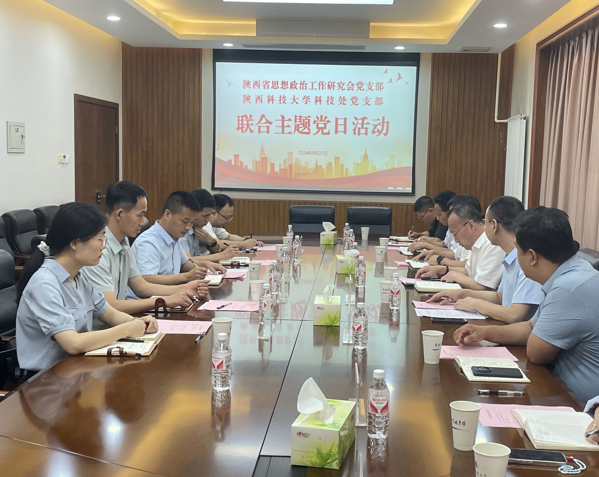 9月27日下午,陜西省思想政治工作研究會(huì)機(jī)關(guān)黨支部與我??萍继廃h支部聯(lián)合開展主題黨日活動(dòng),兩個(gè)支部就開展思想政治工作理論研究進(jìn)行座談交流。副校長(zhǎng)黃海峙,省政研會(huì)秘書長(zhǎng)、機(jī)關(guān)黨支部書記劉向榮參加活動(dòng),會(huì)議由我校科技處強(qiáng)濤濤主持。