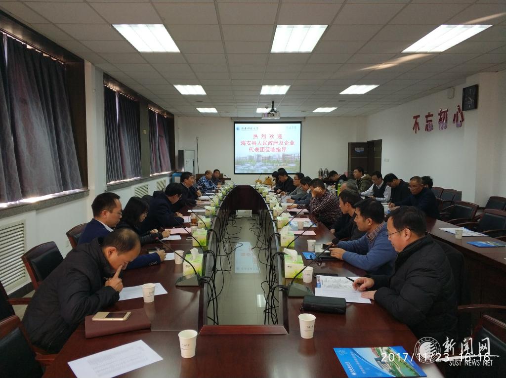 11月23日,江蘇省海安縣人民政府及企業(yè)代表團(tuán)一行25人來我校進(jìn)行科技洽談,就進(jìn)一步加強(qiáng)雙方產(chǎn)學(xué)研合作、推動企業(yè)轉(zhuǎn)型升級進(jìn)行了深入交流,前沿院常務(wù)副院長殷海榮教授主持了科技洽談會。