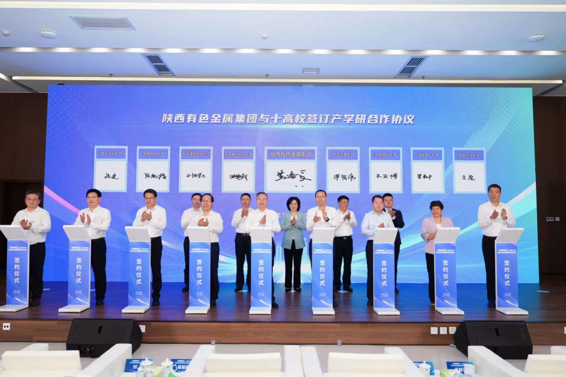為進(jìn)一步深化校企合作交流,促進(jìn)產(chǎn)學(xué)研深度融合,提升產(chǎn)業(yè)鏈發(fā)展水平,推動(dòng)科技自立自強(qiáng),9月29日,由省工信廳和陜西有色金屬集團(tuán)聯(lián)合主辦,金鉬集團(tuán)、金鉬股份承辦的“鏈通校企”鏈主專場(chǎng)——陜西有色金屬集團(tuán)與在陜高校對(duì)接活動(dòng)在金鉬股份舉辦。我校副校長陸趙情受邀參加并簽訂產(chǎn)學(xué)研合作協(xié)議,開啟了校企雙方合作推動(dòng)科技成果產(chǎn)業(yè)化的新征程。