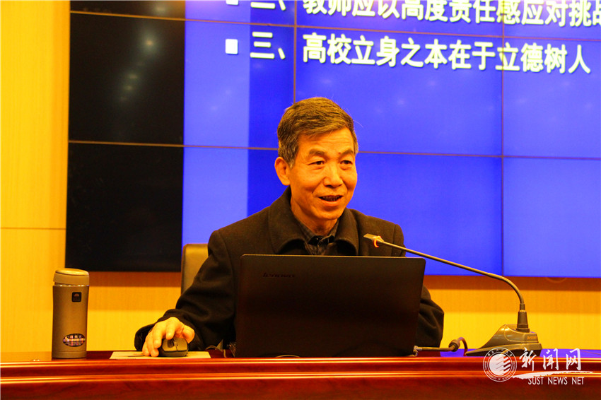 岳東峰教授的報告觀點鮮明,立意高校教師應不負黨和人民重托、教師應以高度責任感應對挑戰(zhàn)和高校立身之本在于立德樹人三個層次。對習近平總書記提出的“高校教師要堅持教育者先受教育,努力成為先進思想文化的傳播者、黨執(zhí)政的堅定支持者,更好擔起學生健康成長指導者和引路人的責任”進行了深刻的闡釋和解讀。
