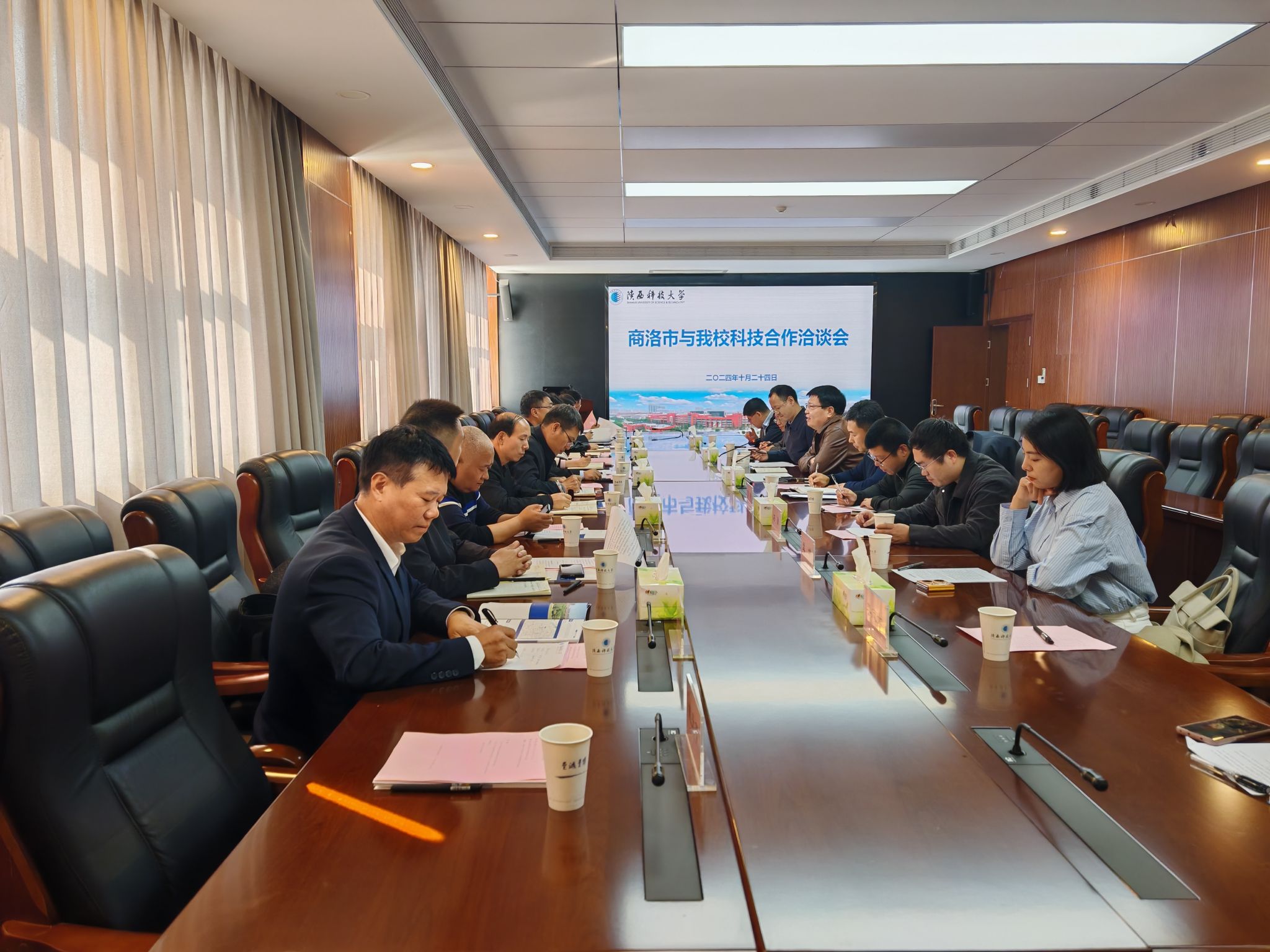 為貫徹落實(shí)我校第三次黨代會(huì)精神,深入實(shí)施服務(wù)社會(huì)創(chuàng)優(yōu)行動(dòng),促進(jìn)產(chǎn)學(xué)研開放合作,經(jīng)前期充分溝通,10月24日下午,商洛市科技局黨組書記、局長(zhǎng)楊博,丹鳳縣科經(jīng)局黨組書記、局長(zhǎng)付學(xué)華,山陽縣科經(jīng)局黨組書記、局長(zhǎng)陳德軍及部分企業(yè)家代表一行15人來我校洽談科技成果轉(zhuǎn)化。我校副校長(zhǎng)陸趙情出席并講話,前沿科學(xué)與技術(shù)轉(zhuǎn)移研究院相關(guān)負(fù)責(zé)人,輕工科學(xué)與工程學(xué)院、食品科學(xué)與工程學(xué)院、電氣與控制工程學(xué)院、設(shè)計(jì)與藝術(shù)學(xué)院相關(guān)專家教授出席了洽談會(huì)。會(huì)議由前沿院常務(wù)副院長(zhǎng)強(qiáng)濤濤主持。