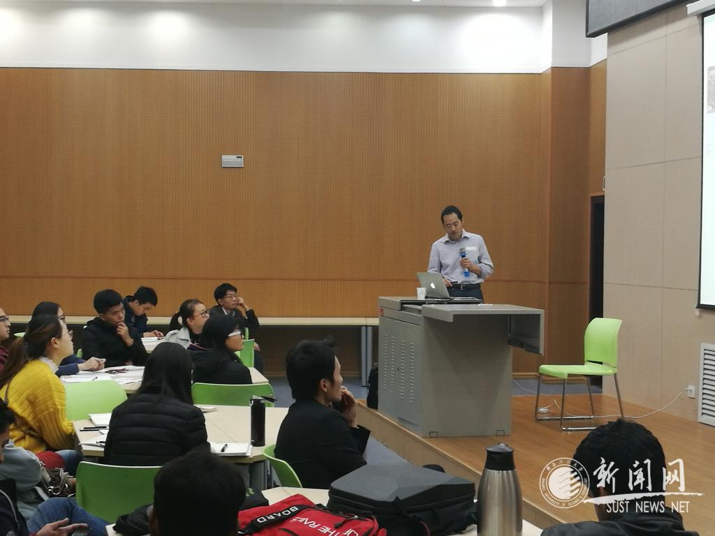西山義春教授為學院師生做了纖維素相關領域的系列學術報告,分別為“From Molecular Interactions to Material Properties of Cellulose”,“Simple Tools to Analyze Crystal Structures”和“Mutiscale-structure of Plant Cellwalls-biosynthesis to Material”。從纖維素材料的微觀結(jié)構(gòu)分析講起,介紹了羥甲基的構(gòu)象、可逆的晶體轉(zhuǎn)變、扭轉(zhuǎn)熵值、氫鍵鍵能等方面;隨后,進一步講述了運用X射線衍射技術和計算機模擬結(jié)合等簡單的工具和方法研究纖維素分子的晶體結(jié)構(gòu),又從植物細胞壁的多尺度結(jié)構(gòu)、細胞結(jié)構(gòu)的多樣性、不同植物細胞的差異性講述了生物合成材料與造紙業(yè)的關系。報告中清晰的研究思路和嚴謹?shù)臄?shù)據(jù)分析拓寬了學生的知識與眼界。之后他又針對一些細節(jié)問題與在場師生進行了熱烈的討論。