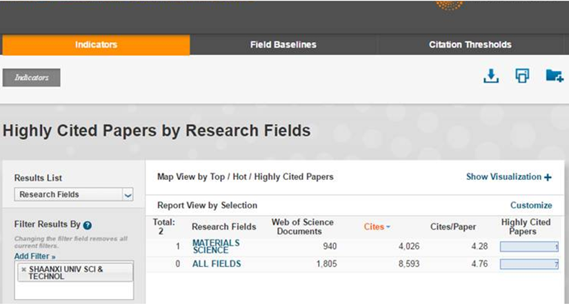 據(jù)美國ESI(Essential Science Indicators,基本科學指標數(shù)據(jù)庫)2017年1月發(fā)布的最新數(shù)據(jù)顯示,陜西科技大學材料科學(Materials Science)學科首次進入ESI全球排名前1%,標志著我校材料科學學科的國際學術影響力大大提升,進入國際一流學科行列。這在我校學科建設史上具有里程碑意義,是學?!半p一流”建設取得的階段性突破,為全面實現(xiàn)“十三五”規(guī)劃奠定良好開端。據(jù)悉陜西省屬重點高校中目前僅有2所擁有全球前1%學科。