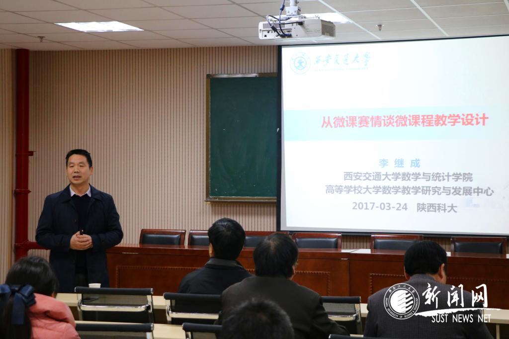3月24日下午,西安交通大學(xué)數(shù)學(xué)與統(tǒng)計(jì)學(xué)院副院長(zhǎng)、陜西省教學(xué)名師、教育部高等學(xué)校大學(xué)數(shù)學(xué)課程教學(xué)指導(dǎo)委員會(huì)秘書長(zhǎng)、高等學(xué)校大學(xué)數(shù)學(xué)教學(xué)研究與發(fā)展中心主任李繼成教授受文理學(xué)院之邀來(lái)我校為教師作了題為“分析微課賽情,談微課程教學(xué)設(shè)計(jì)”的報(bào)告。