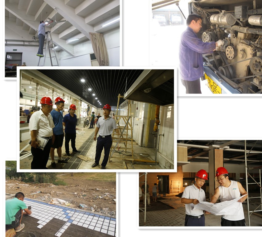 在沁園餐廳暖氣管道改造的工程現(xiàn)場,伴隨“嗞嗞”聲響,火花四濺,白煙彌漫,腳手架上的電焊工們正在進行著一系統(tǒng)暖氣支管和三系統(tǒng)主管道的焊接改造。后勤集團工程維修中心技術(shù)總監(jiān)王笑菲來回巡視著現(xiàn)場,薄薄的T恤衫已經(jīng)滲出了汗水。盡管才是上午9點多,可他們開工已經(jīng)有兩個小時了。該工程要將一二餐廳中鋪設(shè)在地溝中的采暖供回水系統(tǒng)全部改造為頂部運行,其氣密性、壓力要求高,加之現(xiàn)場施工條件復(fù)雜,8月底完工的時限不可謂壓力不大?!拔覀兠刻煸缟?點開工,晚上7點收工,一刻都不敢耽誤。光是設(shè)計施工圖紙一項,設(shè)計院的最初方案只有2張,我們根據(jù)現(xiàn)場實際需要重新修改設(shè)計就做了11張。”王笑菲說。包括這項最大的工程在內(nèi),后勤集團暑期內(nèi)共安排了49項維修改造項目,涉及教學(xué)樓、實驗樓、圖書館、餐廳、浴室、配電室、車管中心等服務(wù)設(shè)施設(shè)備集中的所在。為確保進度和質(zhì)量,后勤集團不僅明確了各項任務(wù)的時間表,而且嚴格規(guī)范過程管理,每個項目均加強前期論證,確定現(xiàn)場負責(zé)人員,引入工程監(jiān)理?!笆罴僖詠砗笄谠S多職工奮戰(zhàn)在一線,為的就是新學(xué)期開學(xué)時,能夠給全校師生帶來一個煥然一新的校園面貌和服務(wù)體驗?!焙笄诩瘓F總經(jīng)理周文濤堅定地說。