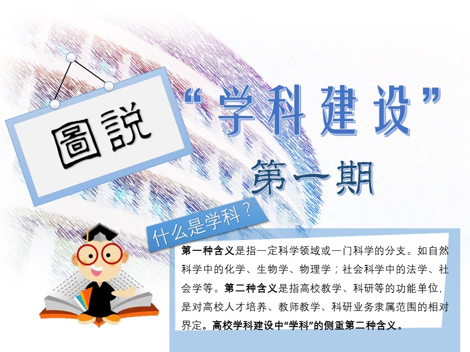 【導(dǎo)語】 學科建設(shè)是高校建設(shè)和發(fā)展的核心,體現(xiàn)著一所高校的水平、特色、建設(shè)層次。當前,圍繞建設(shè)“一流大學、一流學科”的發(fā)展目標,全校上下正在為通過2016年全國一級學科評估工作做最后的沖刺。藉此,黨委宣傳部陸續(xù)推出學科建設(shè)【圖說】系列相關(guān)報道,澄清關(guān)于學科和學科建設(shè)的相關(guān)認識,營造濃郁的學科及學科建設(shè)“人人關(guān)注、人人參與、人人上心”的校園輿論氛圍。