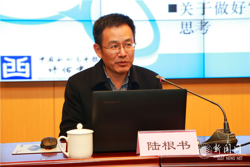 陸根書教授在報告中,從審核評估的由來與重要意義、審核評估的內(nèi)涵與特點和關(guān)于做好審核評估的幾點思考等三個方面,深入解讀了學(xué)校做好迎評促建工作。他介紹了本科教學(xué)工作審核評估的目標(biāo)、重要內(nèi)容與基本形式、重要意義,剖析了審核評估與在全國高校開展的第一輪本科教學(xué)工作水平評估相比呈現(xiàn)的重要調(diào)整和特點,以及陜西省審核評估工作及其特色,并就如何界定高校辦學(xué)定位于人才培養(yǎng)目標(biāo)定位、如何認(rèn)識教學(xué)質(zhì)量標(biāo)準(zhǔn)、如何理解審核評估方案中的“特色項目”、學(xué)校自評如何體現(xiàn)“五個度”等問題,談了自己的認(rèn)識和體會。