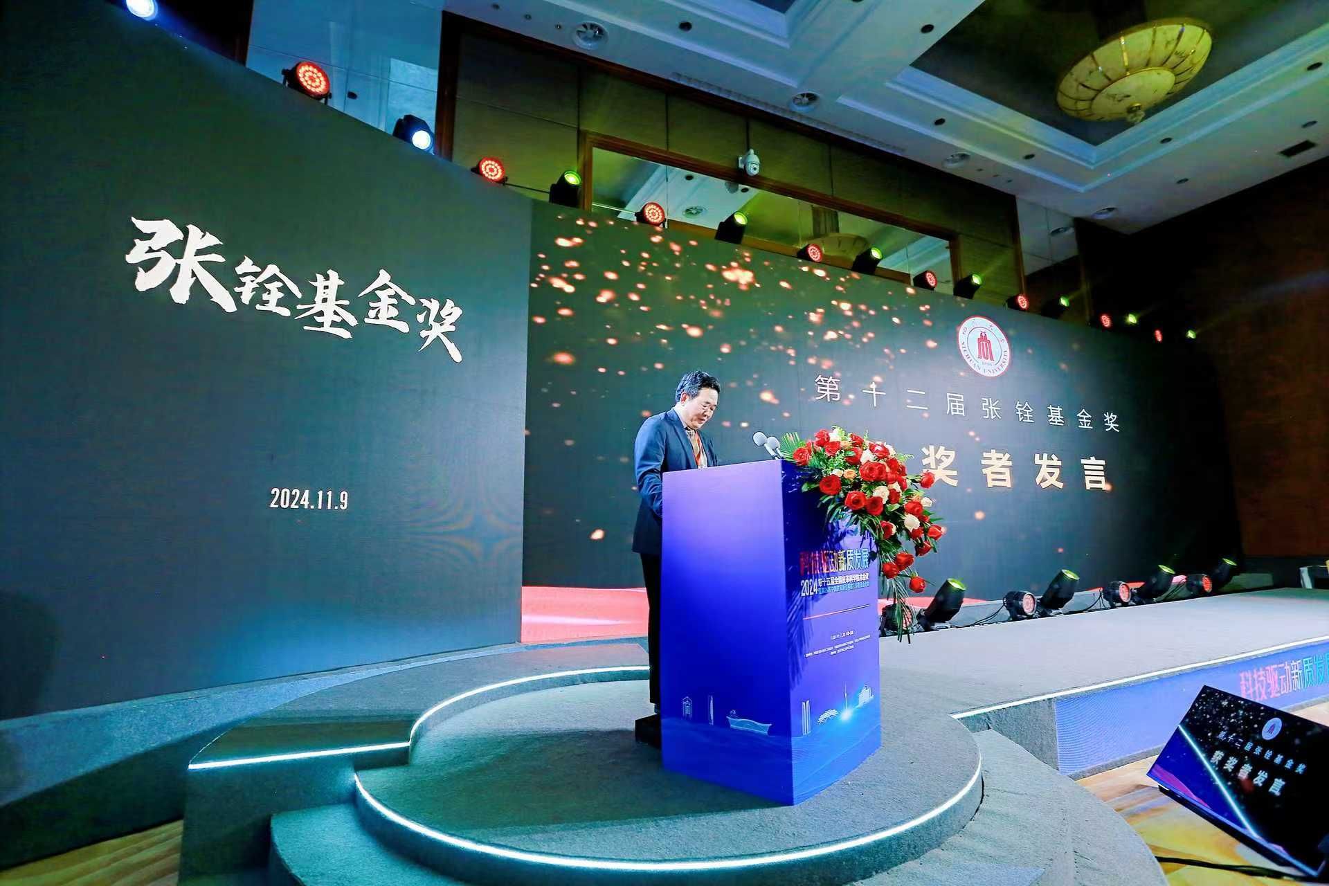 在頒獎典禮上,張銓基金評獎委員會名譽(yù)主任、中國工程院院士、四川大學(xué)教授石碧院士介紹了第十二屆張銓基金評獎過程,并宣讀了獲獎?wù)呙麊巍Mㄟ^兩輪評選工作,馬建中與李玉中成功入選。大會介紹了馬建中與李玉中在皮革教學(xué)科研、人才培養(yǎng)以及推動皮革行業(yè)管理與可持續(xù)發(fā)展等方面做出的突出貢獻(xiàn)。石碧院士和四川大學(xué)副校長趙長生一起為獲獎?wù)哳C獎。