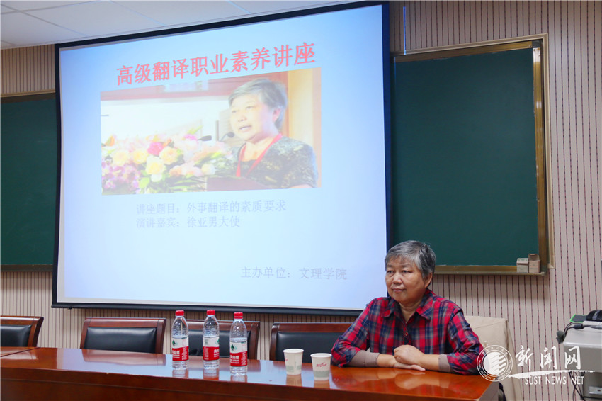 10月14日下午,應(yīng)研究生院、文理學(xué)院邀請,外交部前翻譯室主任徐亞男大使來我校作了題為“外事翻譯的素質(zhì)要求”的學(xué)術(shù)報(bào)告。報(bào)告會(huì)由文理學(xué)院院長藺小林教授主持。文理學(xué)院外語系教師、翻譯碩士研究生及英語專業(yè)本科生參加,西安工業(yè)大學(xué)有關(guān)老師代表也專程聆聽了報(bào)告。