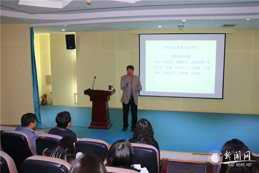 11月15日上午,全國翻譯專業(yè)學(xué)位研究生教育指導(dǎo)委員會(huì)學(xué)術(shù)委員會(huì)委員、中國英漢語比較研究會(huì)理事、新疆大學(xué)謝旭升教授應(yīng)邀做客文理學(xué)院導(dǎo)師論壇,并做了題為《文化翻譯多棱鏡—磨合的藝術(shù)》的學(xué)術(shù)報(bào)告。報(bào)告會(huì)由文理學(xué)院院長藺小林主持,文理學(xué)院外語系教師、翻譯碩士研究生聽取了報(bào)告。