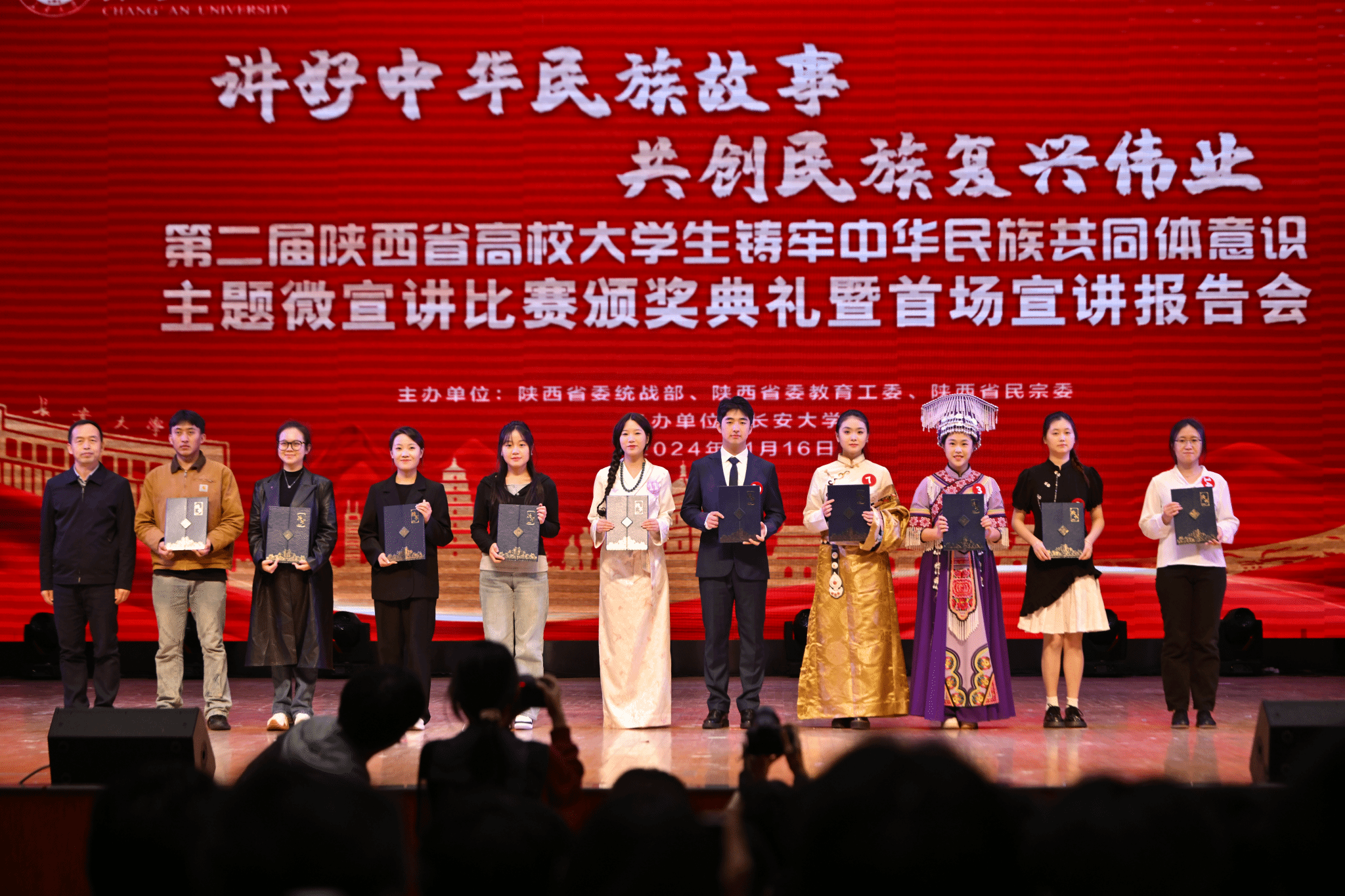 11月16日下午,由陜西省委統(tǒng)戰(zhàn)部、省委教育工委、省民宗委主辦,長(zhǎng)安大學(xué)承辦的第二屆陜西省高校大學(xué)生鑄牢中華民族共同體意識(shí)“講好中華民族故事,共創(chuàng)民族復(fù)興偉業(yè)”主題微宣講比賽決賽在長(zhǎng)安大學(xué)北校區(qū)文化藝術(shù)中心舉行。本次比賽共設(shè)一等獎(jiǎng)5名、二等獎(jiǎng)10名、三等獎(jiǎng)15名,優(yōu)秀組織獎(jiǎng)5名。我校設(shè)計(jì)與藝術(shù)學(xué)院藝播222班德倩卓瑪同學(xué)在比賽中脫穎而出,榮獲一等獎(jiǎng)。該獎(jiǎng)項(xiàng)是近年來(lái)我校在此類(lèi)賽事中取得的最好成績(jī)。