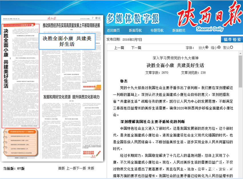 新聞鏈接:決勝全面小康 共建美好生活_陜西日?qǐng)?bào)-陜西傳媒網(wǎng)