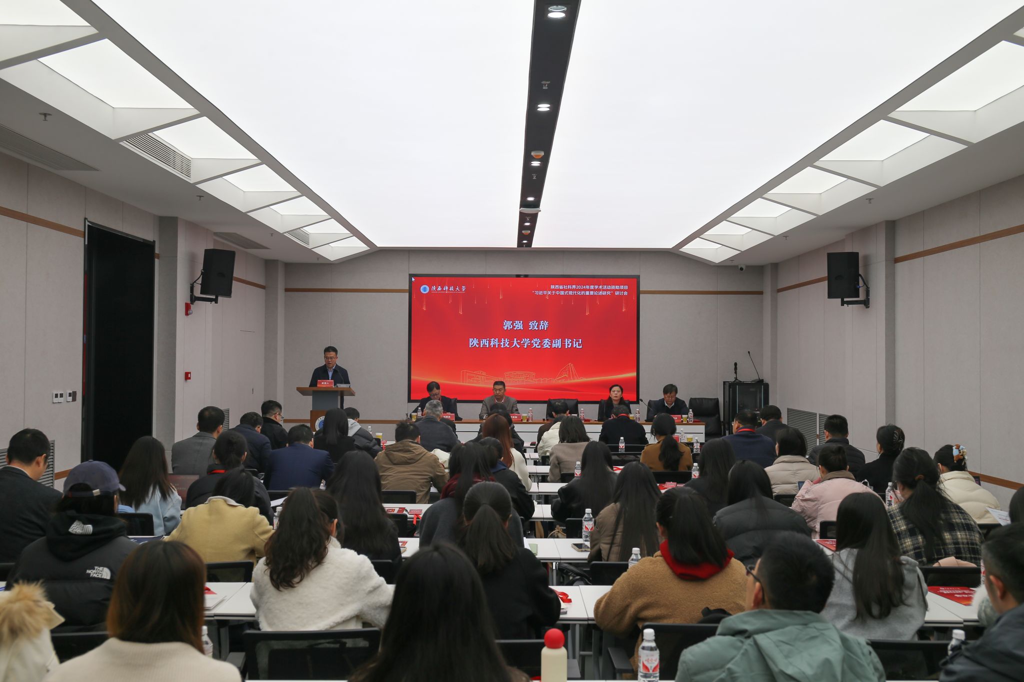 11月23日,由陜西省馬克思主義研究會(huì)主辦,陜西科技大學(xué)馬克思主義學(xué)院承辦的“習(xí)近平關(guān)于中國(guó)式現(xiàn)代化的重要論述研究”研討會(huì)在我校成功舉辦。我校黨委副書(shū)記郭強(qiáng)、陜西省社會(huì)科學(xué)界聯(lián)合會(huì)社會(huì)組織管理部二級(jí)調(diào)研員劉瑛出席研討會(huì)并致辭。來(lái)自西北農(nóng)林科技大學(xué)、陜西師范大學(xué)、西北大學(xué)、西安電子科技大學(xué)、西安理工大學(xué)、西北政法大學(xué)、西安醫(yī)學(xué)院、陜西省社會(huì)科學(xué)院、西安市委黨校等院校及科研機(jī)構(gòu)的專(zhuān)家學(xué)者、博士生參加研討。會(huì)議開(kāi)幕式由我校馬院黨委書(shū)記劉根良主持。