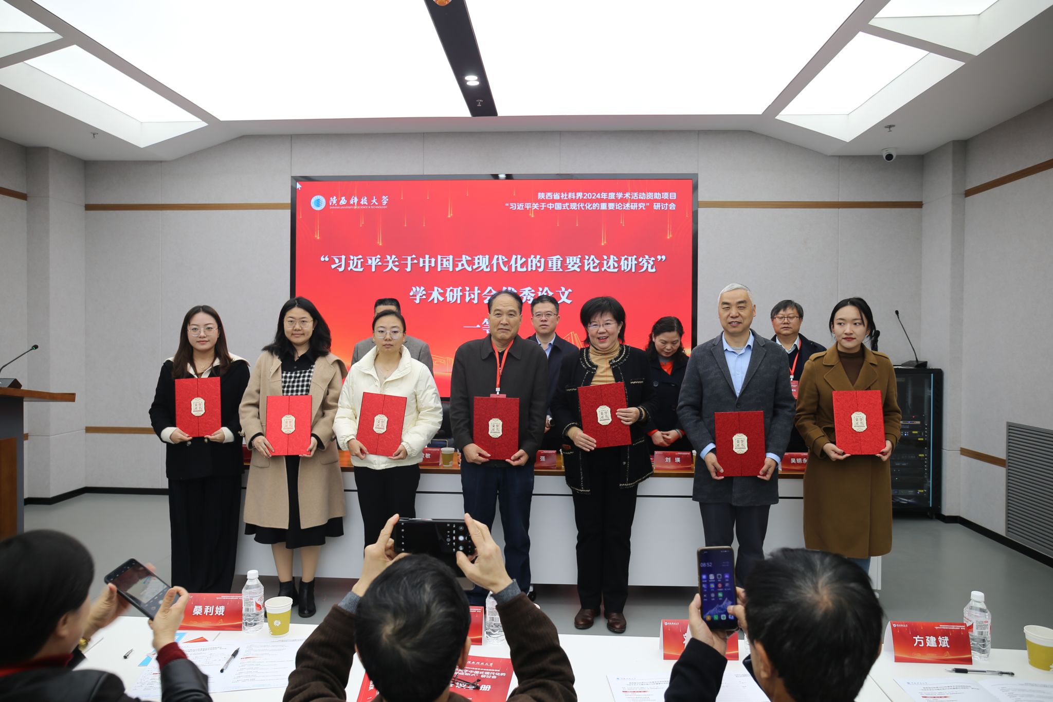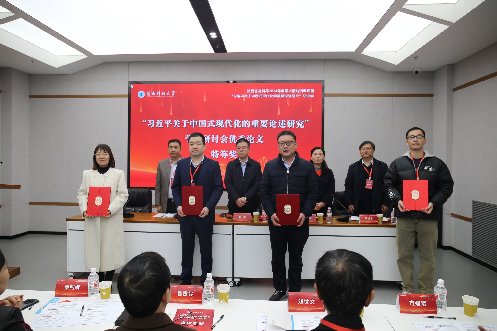 會(huì)議期間,陜西省馬克思主義研究會(huì)秘書(shū)長(zhǎng)李政敏宣讀了論文獲獎(jiǎng)人員名單并進(jìn)行頒獎(jiǎng)。西北農(nóng)林科技大學(xué)方建斌教授、西安理工大學(xué)魯寬民教授、陜西省社會(huì)科學(xué)院劉世文教授、中共西安市委黨校蘇鳳昌教授、陜西科技大學(xué)朱光亞副教授等專(zhuān)家,分別以“關(guān)于中國(guó)式農(nóng)業(yè)農(nóng)村現(xiàn)代化的幾點(diǎn)思考”“在奮進(jìn)中國(guó)式現(xiàn)代化中堅(jiān)持黨的文化領(lǐng)導(dǎo)權(quán)”“論全人類(lèi)價(jià)值及其對(duì)中國(guó)式現(xiàn)代化的重大意義”“創(chuàng)新中國(guó)式現(xiàn)代化開(kāi)發(fā)區(qū)的體制機(jī)制研究”“構(gòu)境:馬克思主義中國(guó)化視域中的傳統(tǒng)文化現(xiàn)代化”等為題,向大會(huì)做了主題報(bào)告。主題報(bào)告由陜西省馬克思主義研究會(huì)副理事長(zhǎng)、西安醫(yī)學(xué)院馬克思主義學(xué)院院長(zhǎng)桑利娥教授主持。獲獎(jiǎng)代表發(fā)言環(huán)節(jié)由陜西省馬克思主義研究會(huì)副理事長(zhǎng)方建斌教授主持,獲獎(jiǎng)代表李峙謙等八位師生聚焦習(xí)近平總書(shū)記關(guān)于中國(guó)式現(xiàn)代化的重要論述,匯報(bào)了各自研究闡釋成果。