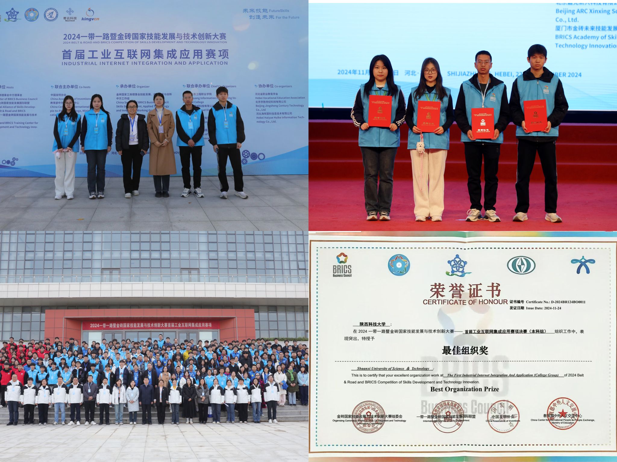 11月22日至24日,2024“一帶一路”暨金磚國(guó)家技能發(fā)展與技術(shù)創(chuàng)新大賽首屆工業(yè)互聯(lián)網(wǎng)集成應(yīng)用賽項(xiàng)在河北石家莊圓滿(mǎn)落幕。來(lái)自全國(guó)18個(gè)省份80多所院校的300余名參賽選手齊聚滹沱河畔。經(jīng)過(guò)激烈角逐,數(shù)學(xué)與數(shù)據(jù)科學(xué)學(xué)院學(xué)子獲得一等獎(jiǎng)1項(xiàng)、優(yōu)秀獎(jiǎng)1項(xiàng),學(xué)校榮獲“最佳組織獎(jiǎng)”。