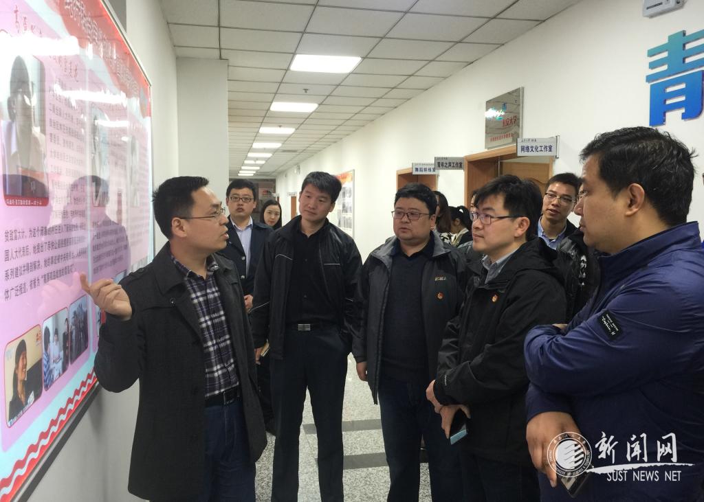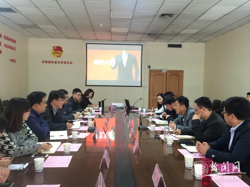 長(zhǎng)安大學(xué)校團(tuán)委副書(shū)記姬國(guó)斌帶領(lǐng)我校調(diào)研團(tuán)參觀(guān)了長(zhǎng)安文化藝術(shù)中心學(xué)生活動(dòng)陣地、“青年之聲”學(xué)生事務(wù)服務(wù)中心、創(chuàng)新創(chuàng)業(yè)培育基地,并詳盡介紹了近年來(lái)取得的工作成效,著重介紹了“青年之聲”工作在場(chǎng)地建設(shè)、硬件投入規(guī)模、組織架構(gòu)、人員配置等方面的情況。參觀(guān)結(jié)束后,雙方開(kāi)展了共青團(tuán)工作經(jīng)驗(yàn)交流會(huì),首先,姬國(guó)斌就長(zhǎng)安大學(xué)團(tuán)學(xué)組織架構(gòu)、校園文化建設(shè)情況、社團(tuán)管理模式、創(chuàng)新創(chuàng)業(yè)教育、社會(huì)實(shí)踐與志愿服務(wù)工作等方面,系統(tǒng)全面的介紹了長(zhǎng)安大學(xué)共青團(tuán)工作的整體情況。