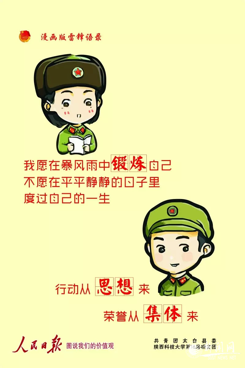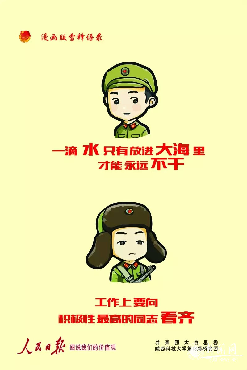 在第54個(gè)雷鋒紀(jì)念日之際,我校第三屆研究生支教團(tuán)助力太白縣文明辦、團(tuán)縣委組成開展的“學(xué)雷鋒”志愿服務(wù)活動(dòng),為太白縣設(shè)計(jì)了一套“漫畫版”雷鋒語錄,收到熱烈的社會反響,并登上《人民日報(bào)·圖說我們的價(jià)值觀特刊》和華商網(wǎng)等各大媒體。