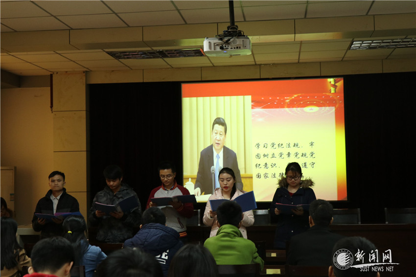 能動專業(yè)學生黨支部于12月22日開展“不忘初心,黨員朗誦”主題黨日活動。學院黨委書記夏祥林作為黨支部聯系人出席本次活動。夏祥林講解了黨委委員聯系黨支部的工作制度,并對此次黨日活動的內容和形式進行了充分肯定。他指出,大學生黨員要珍惜現在的大學時光,要將實現遠大抱負與腳踏實地相結合,規(guī)劃好大學四年生活,做一名有理想、有擔當的新時代大學生黨員。支部全體黨員同志莊嚴舉起右拳,重溫入黨誓詞。鏗鏘有力的誓詞是一種無形的力量,提醒每一位黨員同志增強黨性修養(yǎng),時刻不忘黨員的初心和使命。37名黨員和積極分子分別從黨的十九大報告、《習近平談治國理政》、《習近平的七年知青歲月》、《之江新語》、《習近平:青年要自覺踐行社會主義核心價值觀——在北京大學師生座談會上的講話》中節(jié)選7組經典片段進行朗讀,同志們的朗讀生動而富有感染力,給人深深的觸動和思考。機電學院把學習宣傳貫徹好黨的十九大精神作為首要政治任務抓,并以黨的十九大精神指導實踐、凝心聚力,推動工作。