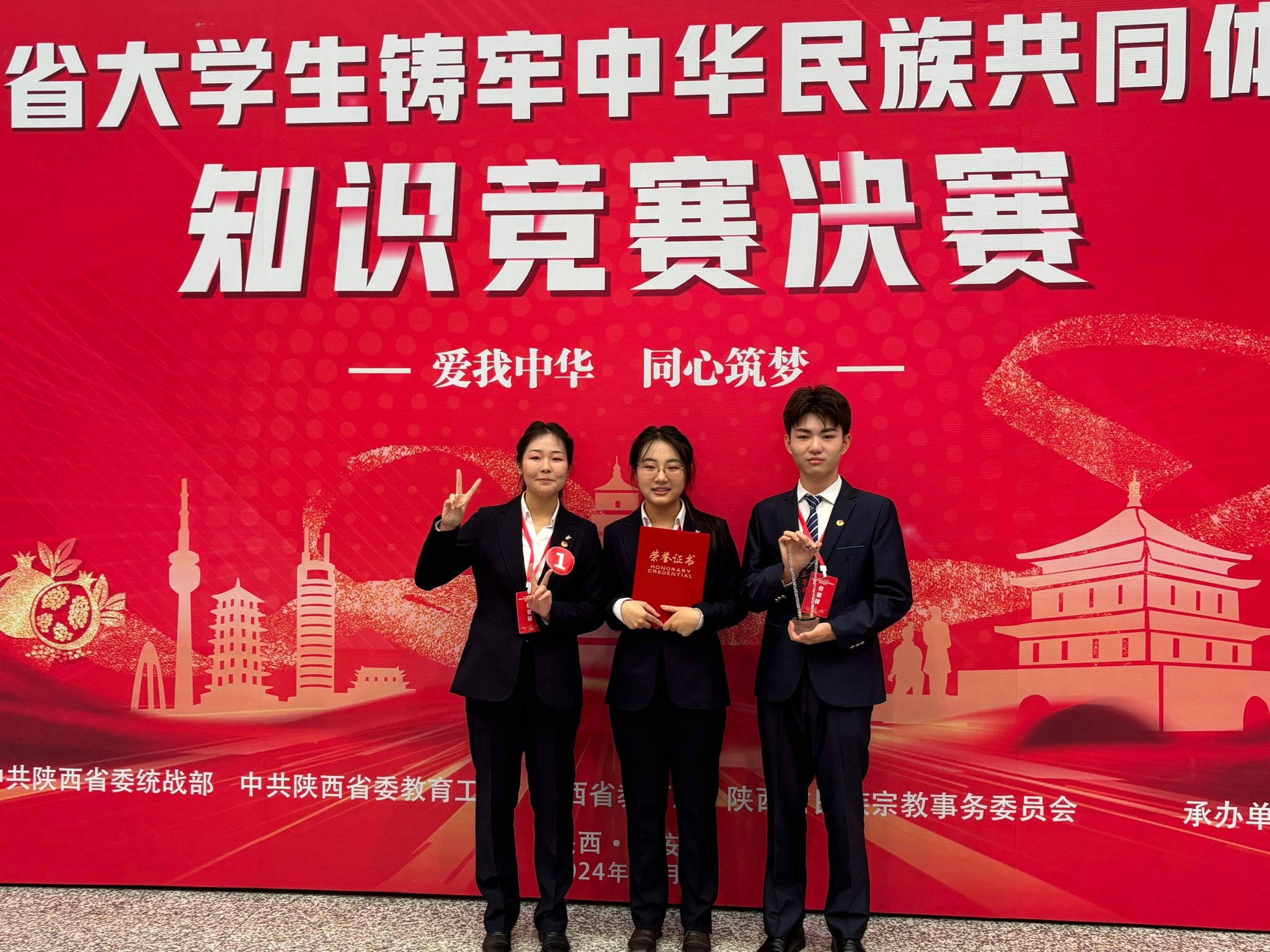 12月5日,由陜西省委統(tǒng)戰(zhàn)部、省委教育工委、省民宗委聯(lián)合主辦的陜西省大學(xué)生鑄牢中華民族共同體意識知識競賽決賽在長安大學(xué)舉行。我校由經(jīng)濟與管理學(xué)院郭子敬、張思涵和機電工程學(xué)院馬釗三位同學(xué)組成的“智勝先鋒”隊獲得團體三等獎。該獎項是我校今年繼榮獲“第二屆陜西省高校大學(xué)生鑄牢中華民族共同體意識主題微宣講”比賽一等獎后在民族工作方面獲得的又一省級榮譽。