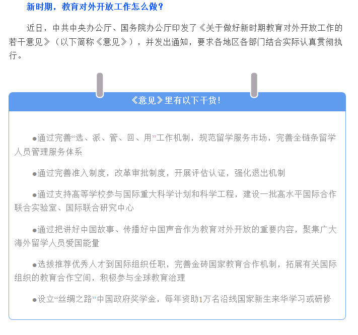 【政策速遞】教育開放工作今后要這樣做!中辦國辦發(fā)文了