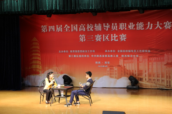 在剛剛落幕的第四屆全國高校輔導(dǎo)員職業(yè)能力大賽復(fù)賽第三賽區(qū)比賽上,我校輔導(dǎo)員再傳捷報(bào):李鵬、劉倩繼榮獲第三屆陜西省高校輔導(dǎo)員職業(yè)能力大賽一等獎(jiǎng)后,再接再厲,力克群雄,分別以第一名和第三名的成績榮獲本賽區(qū)一等獎(jiǎng),雙雙挺進(jìn)全國總決賽。