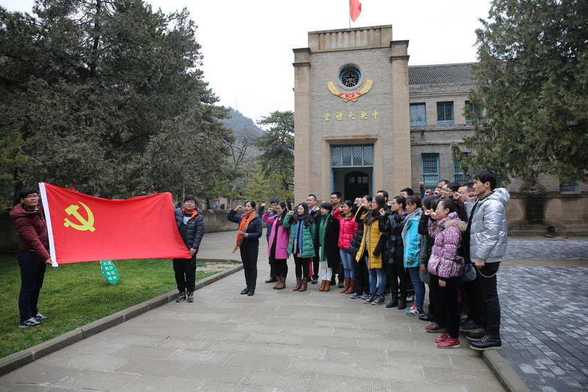 在楊家?guī)X革命舊址,全體青年教師在中共七大會址前,舉行了重溫入黨誓詞儀式。莊嚴的中央大禮堂、鮮艷的黨旗在蒼松翠柏的掩映之下顯得格外莊嚴,一群朝氣蓬勃的青年人面向黨旗又一次莊重地舉起右手:“我志愿加入中國共產(chǎn)黨,擁護黨的綱領(lǐng),遵守黨的章程,履行黨員義務(wù),執(zhí)行黨的決定,嚴守黨的紀律,保守黨的秘密,對黨忠誠,積極工作,為共產(chǎn)主義奮斗終身,隨時準備為黨和人民犧牲一切,永不叛黨。 ”在參觀毛澤東、周恩來、朱德等革命家的辦公室與住所前,一位青年教師說,“在物質(zhì)極度豐富、文化多元發(fā)展的今天,多少青年人按捺不住內(nèi)心的躁動,被享樂主義、奢靡之風(fēng)左右頭腦而誤入歧途,看到毛主席在如此簡陋的辦公環(huán)境下卻寫出了《中國革命和中國共產(chǎn)黨》、《新民主主義論》等偉大論著,讓人深思。在我們?nèi)粘=虒W(xué)科研工作中,客觀條件不是最重要的,關(guān)鍵在于主觀能動性。陜西科技大學(xué)的教師發(fā)揚艱苦樸素的延安精神,用兩臺老虎鉗辦起五個工廠;在新校區(qū)建設(shè)發(fā)展的十年里,學(xué)校在異常困難的情況下,秉承‘勤儉辦學(xué)、艱苦奮斗’的‘老輕院精神’,實現(xiàn)了學(xué)校在歷史上最快速、最輝煌的跨越式發(fā)展,這一切都是對延安精神最好的堅持和傳承。”