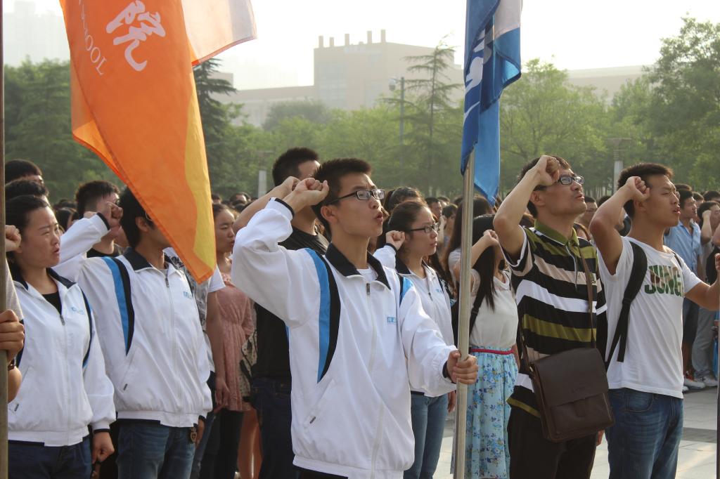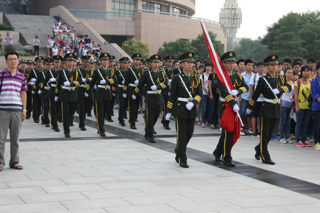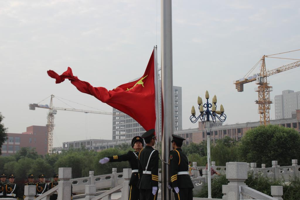 7月1日清晨,13個學院(部)的1000多名黨員及入黨積極分子齊聚?;蹐D書館南廣場參加升國旗儀式,共同慶祝偉大的中國共產黨94歲生日。