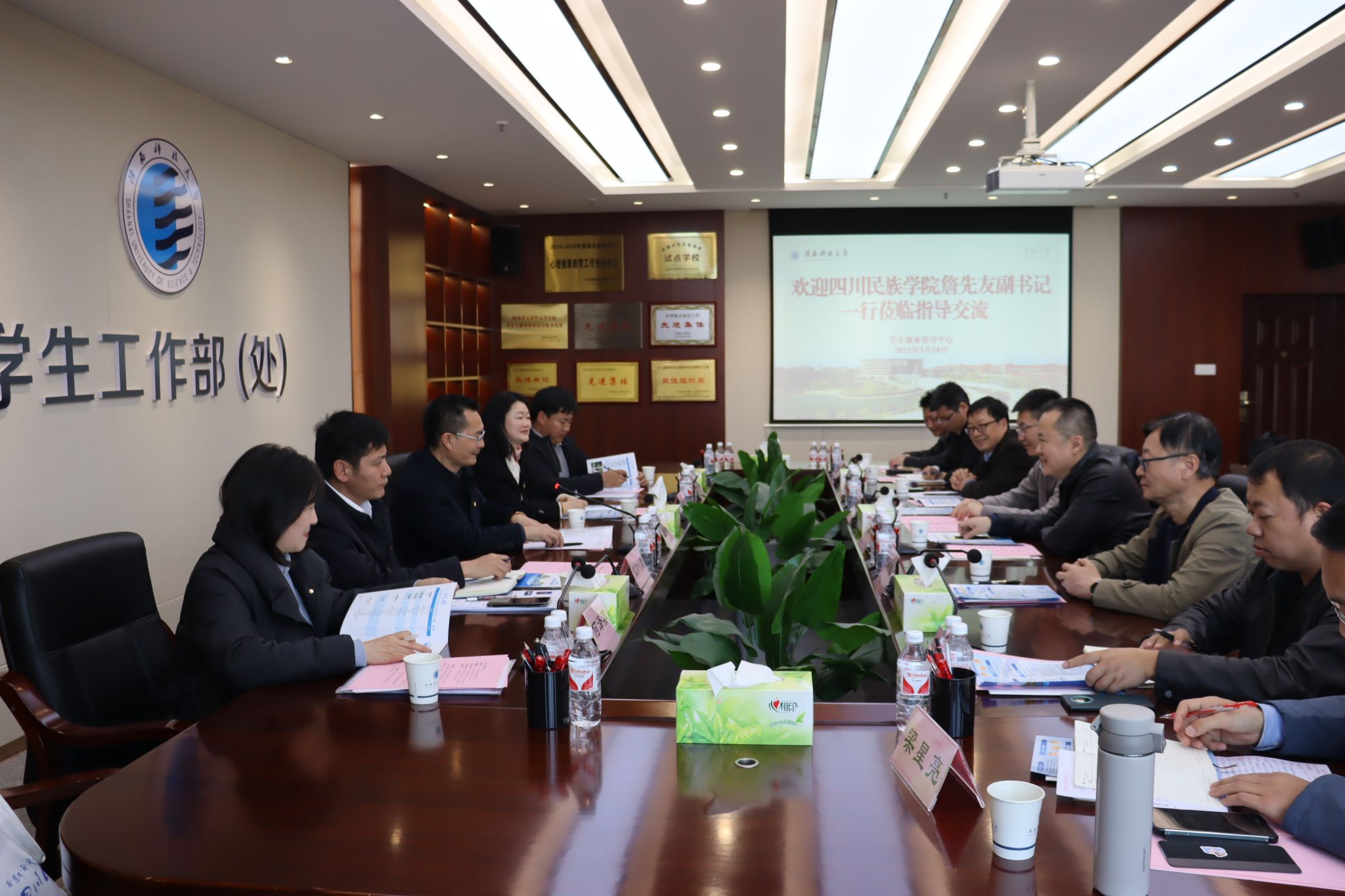 3月10日,四川民族學(xué)院黨委副書記詹先友一行來校調(diào)研交流、選聘畢業(yè)生,校黨委副書記李學(xué)軍出席座談會(huì)并陪同調(diào)研。座談會(huì)上,雙方就研究生專業(yè)方向、培養(yǎng)成效及就業(yè)意向等話題進(jìn)行深入交流。
