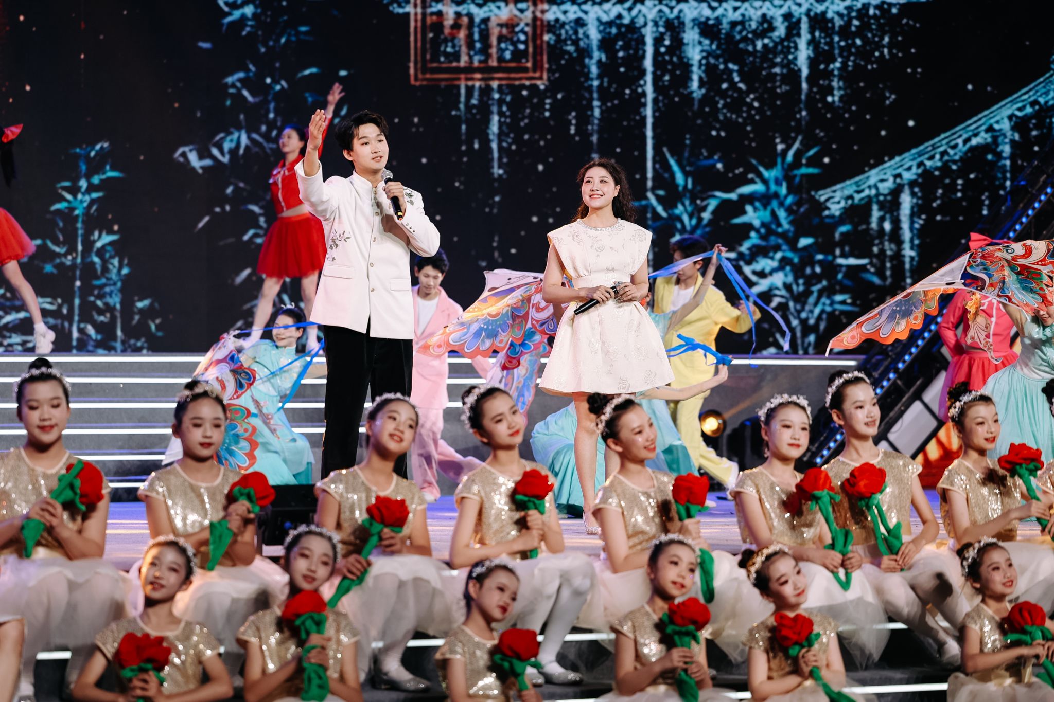 第13屆中國大學(xué)生電視節(jié)閉幕式盛典“放飛夢想 青春歌會(huì)”由中央廣播電視總臺(tái)朱迅領(lǐng)銜主持,同期展示了2024 全國大學(xué)生原創(chuàng)校園歌曲入圍作品、大學(xué)生原創(chuàng)影像作品、“有為”大學(xué)生創(chuàng)作扶持作品等。此外,倪萍、閻維文、蔡國慶、烏蘭圖雅、李斯丹妮、萬妮達(dá)等老中青三代藝術(shù)家也與青年大學(xué)生們同臺(tái)演出,致敬經(jīng)典。盛典儀式星光璀璨,以文化人、以藝通心,充分表達(dá)了當(dāng)代大學(xué)生及電視、網(wǎng)絡(luò)視聽藝術(shù)工作者奮進(jìn)新征程、建功新時(shí)代,以實(shí)際行動(dòng)投身教育強(qiáng)國和文化強(qiáng)國建設(shè)的堅(jiān)定意志,生動(dòng)展現(xiàn)了當(dāng)代大學(xué)生和電視人的家國情懷、責(zé)任擔(dān)當(dāng)與青春活力。