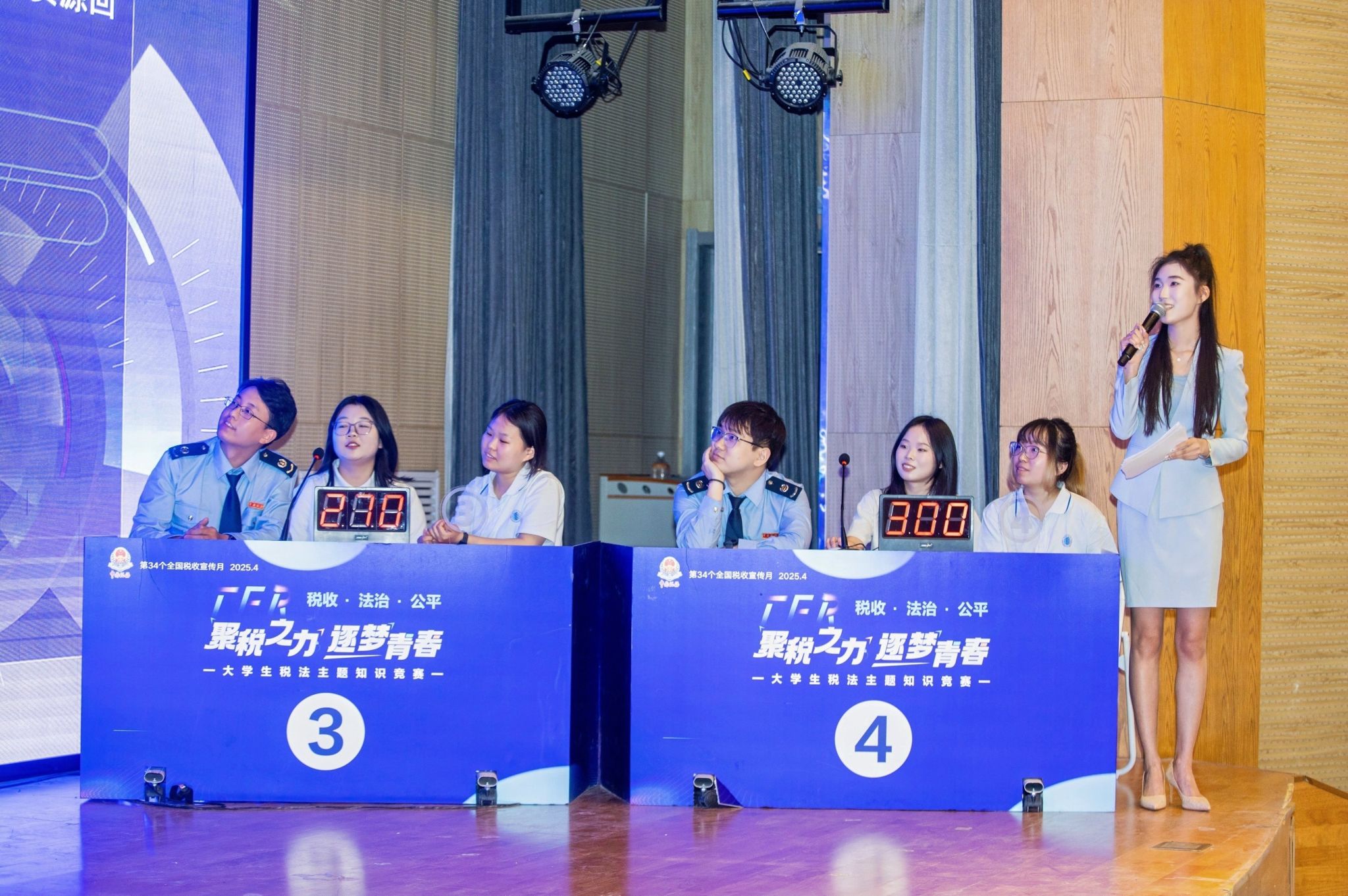 知識(shí)競賽活動(dòng)采取稅務(wù)搭臺(tái)、高校唱戲、專家點(diǎn)評(píng)的形式,由未央?yún)^(qū)稅務(wù)局青年干部與我校學(xué)生混編組成的4支參賽隊(duì)伍展開激烈交鋒。競賽設(shè)置“一展風(fēng)采、團(tuán)隊(duì)協(xié)作、奮勇爭先、放手一搏”等環(huán)節(jié),參賽隊(duì)伍圍繞大學(xué)生創(chuàng)業(yè)就業(yè)稅收優(yōu)惠、個(gè)人所得稅專項(xiàng)附加扣除、社保費(fèi)繳納流程等民生關(guān)切的熱點(diǎn)問題展開智慧碰撞。此次競賽既展現(xiàn)了新時(shí)代稅務(wù)青年的專業(yè)素養(yǎng),又讓大學(xué)生們?cè)诔两襟w驗(yàn)中掌握了“帶得走、用得上”的稅費(fèi)知識(shí),真正實(shí)現(xiàn)了稅法宣傳“零距離”、稅校協(xié)作“深融合”。