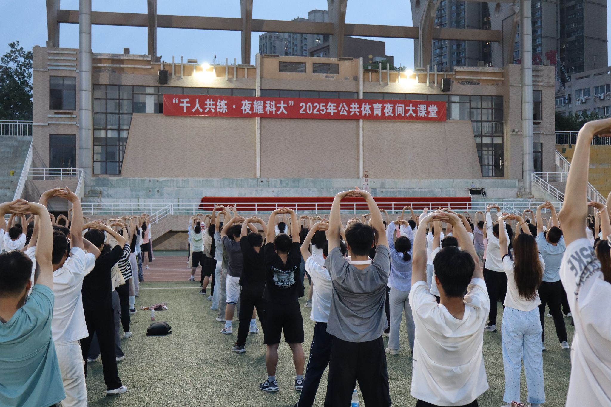 為深入貫徹“健康第一、五育并舉”的教育理念,強(qiáng)化課堂教學(xué)在體育育人中的核心作用,通過課堂教學(xué)引導(dǎo)學(xué)生積極參與運(yùn)動、感受運(yùn)動樂趣、養(yǎng)成運(yùn)動習(xí)慣,體育部于5月12日正式推出“千人共練?夜耀科大”2025年公共體育夜間大課堂。大課堂開設(shè)在學(xué)校標(biāo)準(zhǔn)田徑場,采取體育教師領(lǐng)操、其他教師輔助,學(xué)生集體參與跳操的組織形式,課堂教學(xué)分為八段錦和健身操兩個環(huán)節(jié),并全程配以專業(yè)運(yùn)動音樂,每晚有近2000名學(xué)生參與到體育大課堂教學(xué)活動中來,整個夜間大課堂將持續(xù)兩周時間。