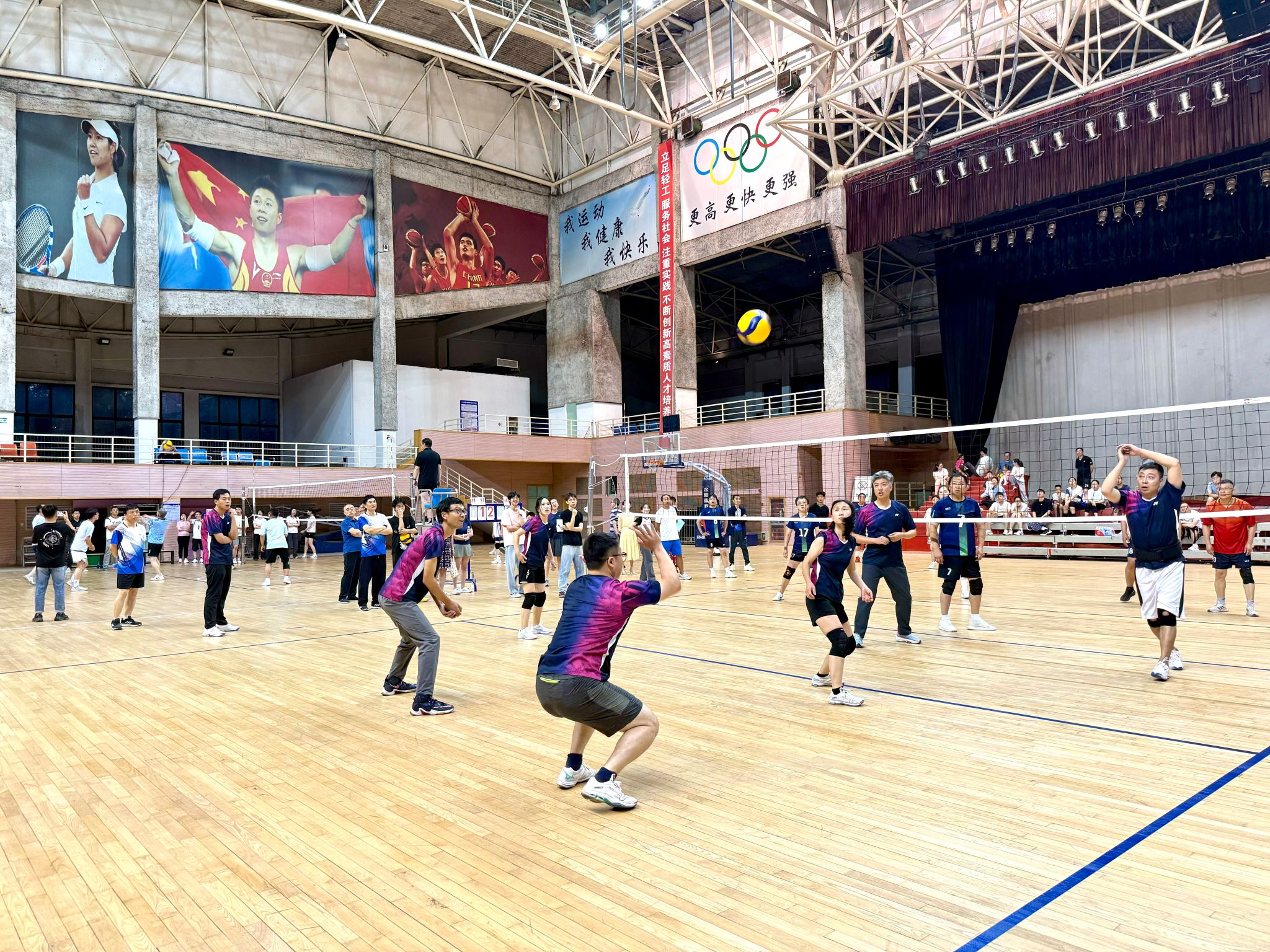 本次教職工排球賽由校工會主辦,校體育部協(xié)辦。全校共19個(gè)分會兩百余名教職工參與了兩個(gè)階段共五十二場比賽。賽前,各分會的參賽隊(duì)員們在做好本職工作的同時(shí),利用業(yè)余時(shí)間加強(qiáng)訓(xùn)練,積極備戰(zhàn)。比賽中,運(yùn)動(dòng)員們精神抖擻、奮力拼搏、揮灑汗水,充分發(fā)揮了團(tuán)隊(duì)協(xié)作精神,用行動(dòng)倡導(dǎo)健康生活,用比賽詮釋友誼第一。