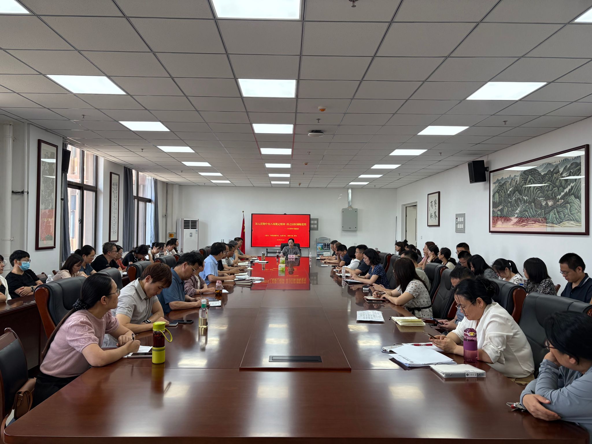 羅瑩指出,黨性是黨員干部立身立業(yè)立言立德的基石,是保持黨的先進(jìn)性和純潔性的重要保證,作風(fēng)問題本質(zhì)上是黨性問題,中央八項(xiàng)規(guī)定在政治上以小切口撬動(dòng)了全面從嚴(yán)治黨大變局、在經(jīng)濟(jì)上推動(dòng)改變了公共資源配置方式、在社會(huì)層面順應(yīng)黨心民意推動(dòng)解決了一批群眾反映強(qiáng)烈的問題、在文化上堅(jiān)持糾“四風(fēng)”樹新風(fēng)并舉重塑黨風(fēng)政風(fēng)、在國家層面促進(jìn)了國家治理體系和治理能力現(xiàn)代化,全體黨員干部要堅(jiān)持在對(duì)黨忠誠維護(hù)核心中錘煉黨性、堅(jiān)持在堅(jiān)定信仰信念中錘煉黨性、堅(jiān)持在擔(dān)當(dāng)作為敢于斗爭(zhēng)中錘煉黨性、堅(jiān)持在永葆清正廉潔的政治本色中錘煉黨性,要以高度的政治責(zé)任感和使命感,深入貫徹落實(shí)中央八項(xiàng)規(guī)定精神,持之以恒錘煉黨性,以過硬的作風(fēng)和形象,正校風(fēng)、強(qiáng)教風(fēng)、優(yōu)學(xué)風(fēng),為實(shí)現(xiàn)學(xué)校事業(yè)高質(zhì)量發(fā)展貢獻(xiàn)自己的力量。