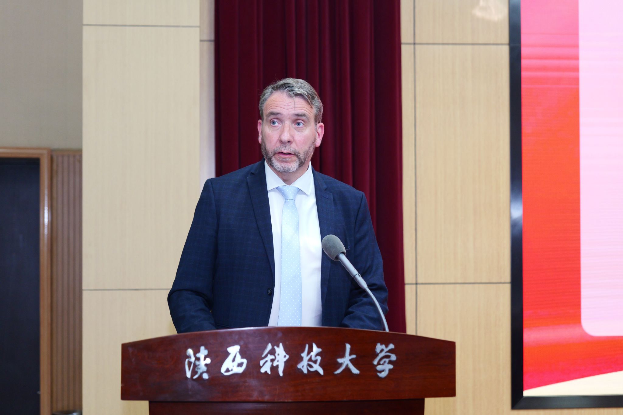 9月2日下午,阿爾斯特學(xué)院在圖書館報告廳舉行2025級新生開學(xué)典禮。陜西科技大學(xué)副校長費貴強(qiáng),阿爾斯特大學(xué)副校長Colin Turner,陜西科技大學(xué)國際合作與交流處處長張素風(fēng),阿爾斯特學(xué)院黨政班子成員,學(xué)院全體教職工、中外方教師代表及2025級全體新生參加典禮。典禮由阿爾斯特學(xué)院常務(wù)副院長王偉偉主持。