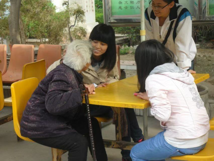 大學時期在草灘敬老院參與志愿服務活動(左二為馮鎖莉)