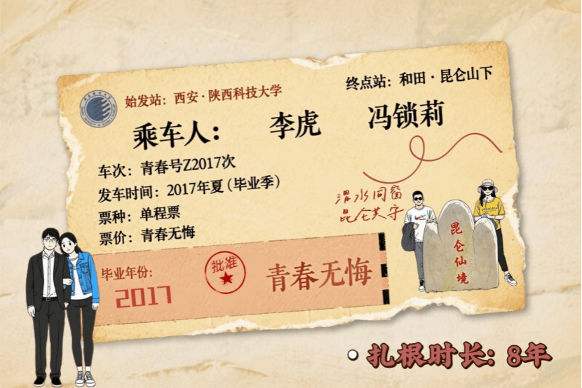 幾乎沒有猶豫,李虎毅然解除了國企協(xié)議。兩張簽往和田的就業(yè)協(xié)議,將“畢業(yè)即分手”的憂慮,化作了“畢業(yè)即相守”的篤定。2017年7月18日,前往和田的列車自西安站駛離,李虎與馮鎖莉的愛情和理想,終在祖國的西陲找到了交匯點:新疆和田。