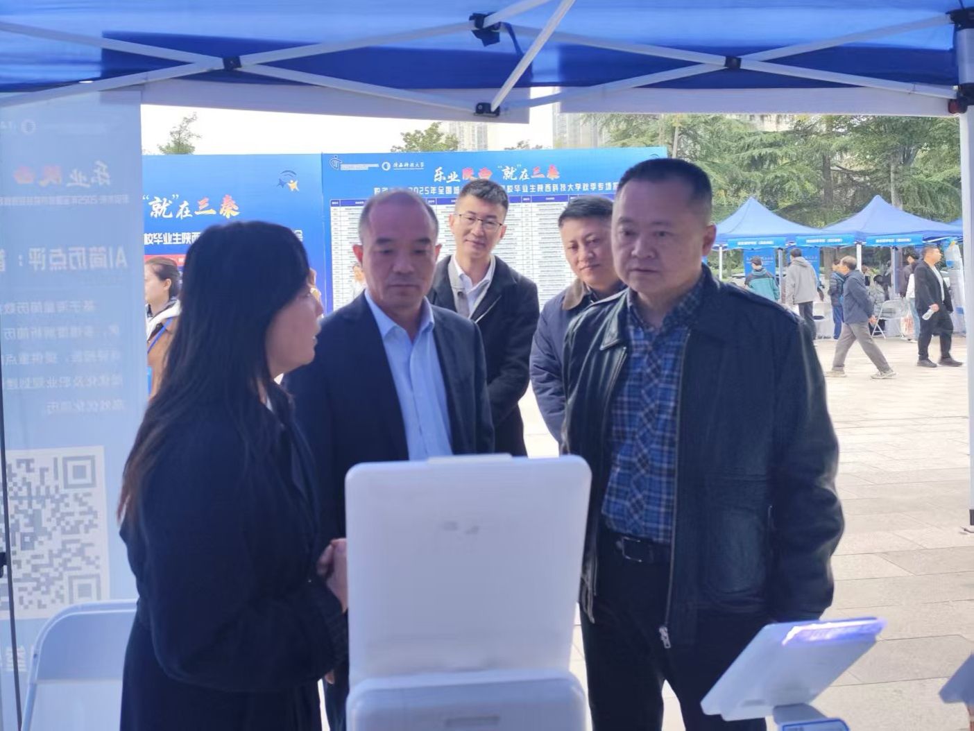 10月23日,2025年全國(guó)城市聯(lián)合招聘高校畢業(yè)生陜西科技大學(xué)秋季專場(chǎng)招聘會(huì)在至博大道文化長(zhǎng)廊舉行。黨委副書記李學(xué)軍到場(chǎng)調(diào)研指導(dǎo)。
