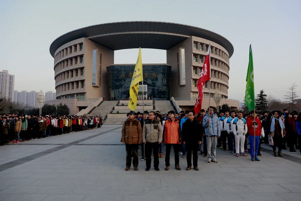 清晨,雖然已是數(shù)九寒天,但圖書館南廣場上已經(jīng)聚集了數(shù)千名前來觀禮的師生。7點(diǎn)50分,校國旗護(hù)衛(wèi)隊(duì)的隊(duì)員們在做最后的著裝整理,雖然已經(jīng)執(zhí)行過幾十次升旗儀式,但在這個(gè)特殊的日子,他們還是感到格外緊張。7點(diǎn)55分,50名身穿禮服的國旗護(hù)衛(wèi)隊(duì)員邁著矯健的步伐走向旗臺。8點(diǎn)整,伴隨著雄壯的國歌聲和一聲“敬禮”,國旗在半空中劃出了一道美麗的弧線。在場的每一個(gè)人臉上都露出了激動的神情。