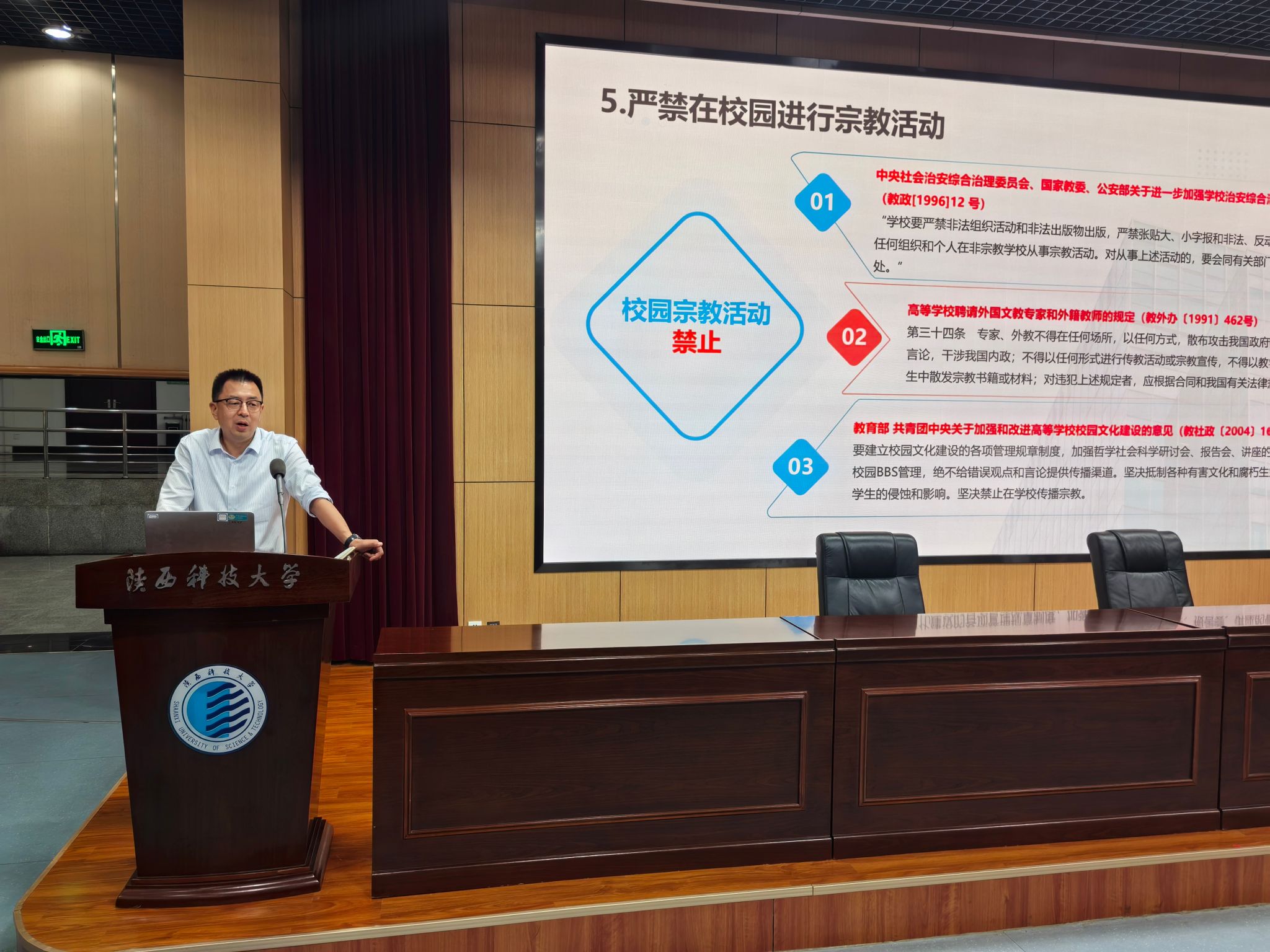 講座尾聲,院黨委書記喬明哲結(jié)合黨委教師工作部編撰的《師德師風(fēng)建設(shè)遵循及負(fù)面典型案例警示教育》、黨委統(tǒng)戰(zhàn)部《宗教政策法律法規(guī)》等文件,就師德師風(fēng)、意識形態(tài)及安全穩(wěn)定領(lǐng)域開展警示教育,強(qiáng)調(diào)須堅(jiān)守紅線意識與底線思維,全面提升師德涵養(yǎng)。他提出學(xué)院將健全師德師風(fēng)建設(shè)常態(tài)化、長效化機(jī)制,通過專題培訓(xùn)、評優(yōu)樹先等形式,營造崇德尚美的育人氛圍,激勵全體教師傳承“三實(shí)作風(fēng)”,恪守立德樹人初心,踐行“為黨育人、為國育才”使命。
