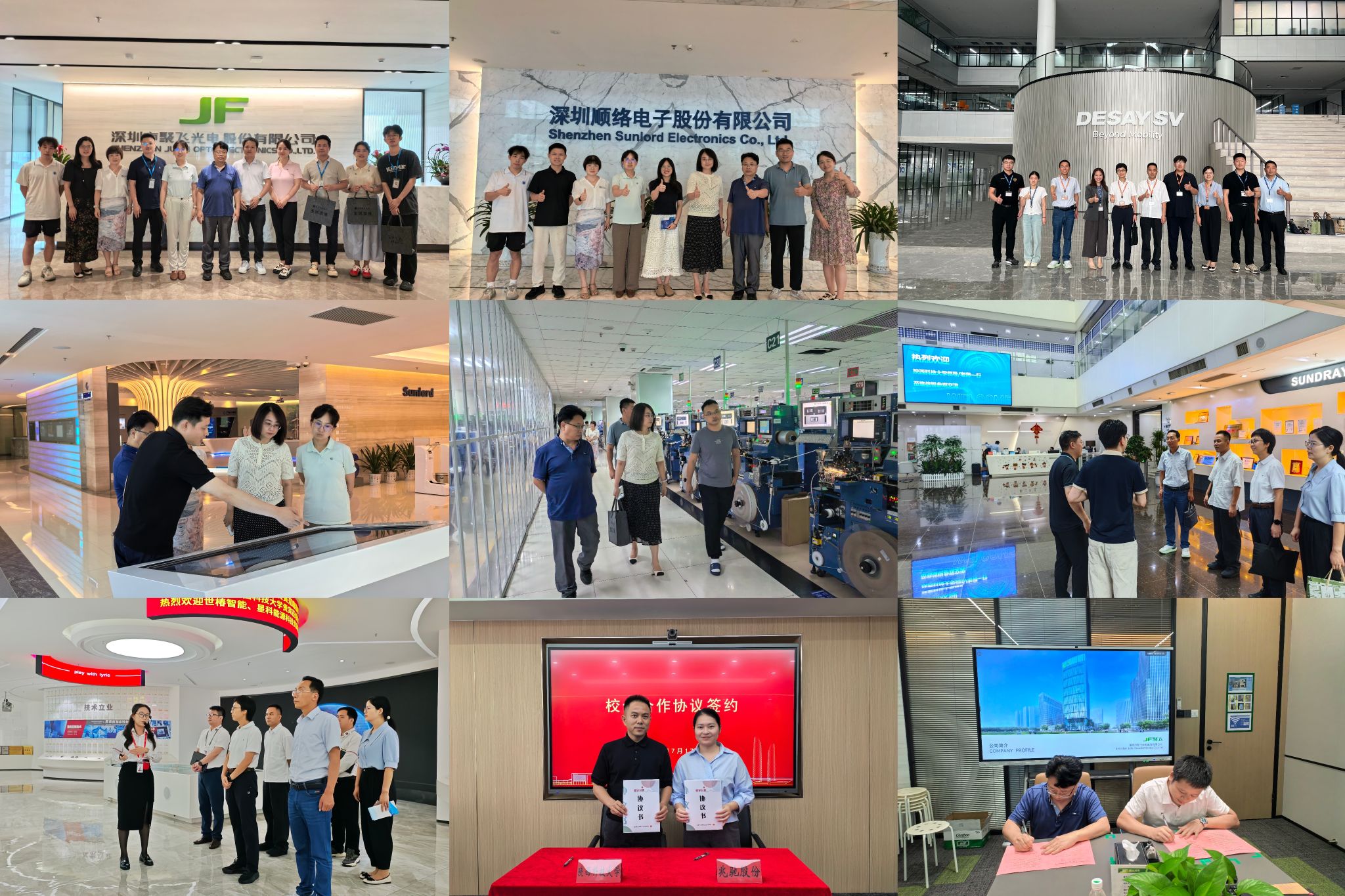 在拓展校企合作與產(chǎn)業(yè)調(diào)研方面,團(tuán)隊圍繞新型顯示技術(shù)、集成電路、半導(dǎo)體、汽車電子等領(lǐng)域,實地考察了包括深圳市兆馳股份有限公司、深圳和美精藝半導(dǎo)體科技股份有限公司、勝科納米(深圳)有限公司、深圳順絡(luò)電子股份有限公司、深圳聚飛光電股份有限公司、德賽西威汽車電子股份有限公司、廣東利元亨智能裝備股份有限公司、信銳網(wǎng)科技術(shù)有限公司、中南國際科技發(fā)展(深圳)有限公司、深圳市圖興科技有限公司等16家企業(yè)。通過參觀企業(yè)展廳、生產(chǎn)線,聽取企業(yè)介紹,團(tuán)隊深入了解了行業(yè)發(fā)展趨勢、技術(shù)前沿動態(tài)及具體崗位能力需求。校企雙方圍繞提升人才培養(yǎng)精準(zhǔn)度,就課程體系優(yōu)化、實踐教學(xué)強(qiáng)化、實習(xí)就業(yè)基地共建、定向崗位開拓等議題展開了務(wù)實討論,旨在將產(chǎn)業(yè)需求融入培養(yǎng)方案,提升學(xué)生就業(yè)競爭力。