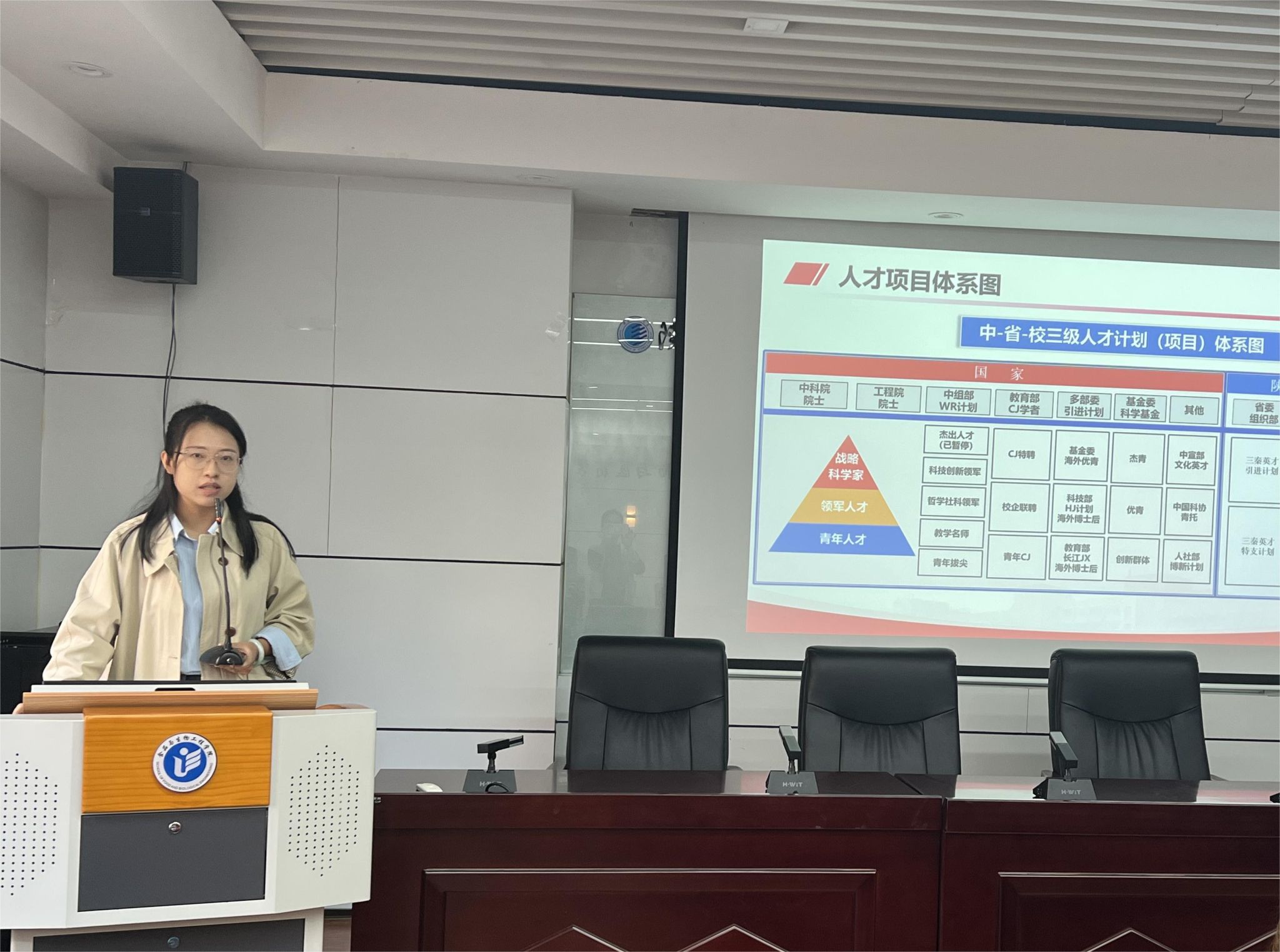 黨梓睿詳細(xì)介紹了國(guó)家級(jí)、省級(jí)各類人才項(xiàng)目的申報(bào)政策,細(xì)致解讀了各類人才項(xiàng)目的評(píng)審流程及與教師職業(yè)發(fā)展的銜接路徑,為學(xué)院青年教師規(guī)劃長(zhǎng)遠(yuǎn)學(xué)術(shù)生涯、實(shí)現(xiàn)職業(yè)階梯式發(fā)展指明了方向。