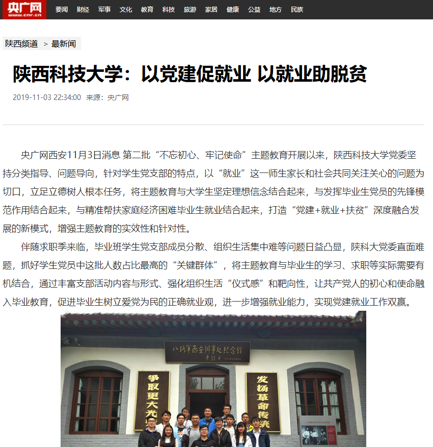 中國青年網(wǎng):陜西科技大學(xué)落實主題教育 以黨建促就業(yè)以就業(yè)助脫貧