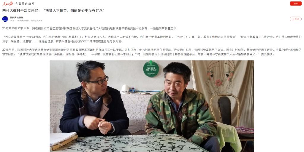 人民日報(bào)App:陜科大駐村干部姜興?。骸胺鲐毴瞬慌驴?,怕的是心中沒有群眾”
