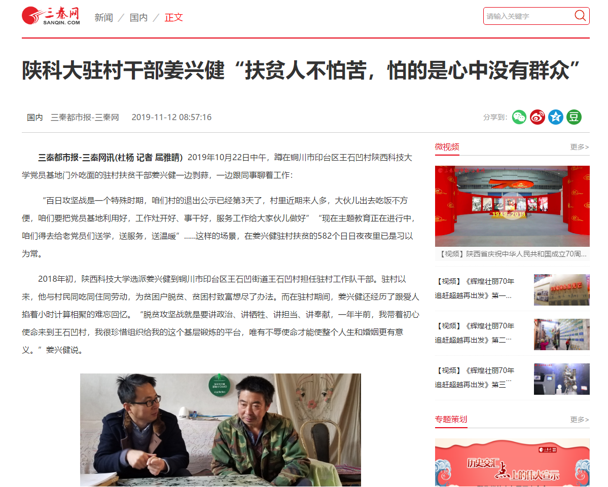 三秦網(wǎng):陜科大駐村干部姜興?。骸胺鲐毴瞬慌驴啵碌氖切闹袥]有群眾”