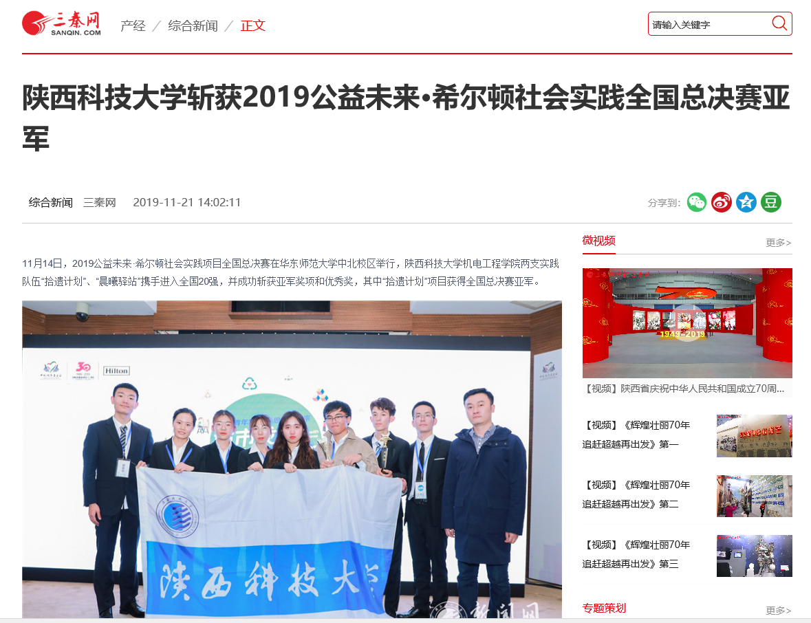 三秦網(wǎng):陜西科技大學(xué)斬獲2019公益未來·希爾頓社會實(shí)踐全國總決賽亞軍